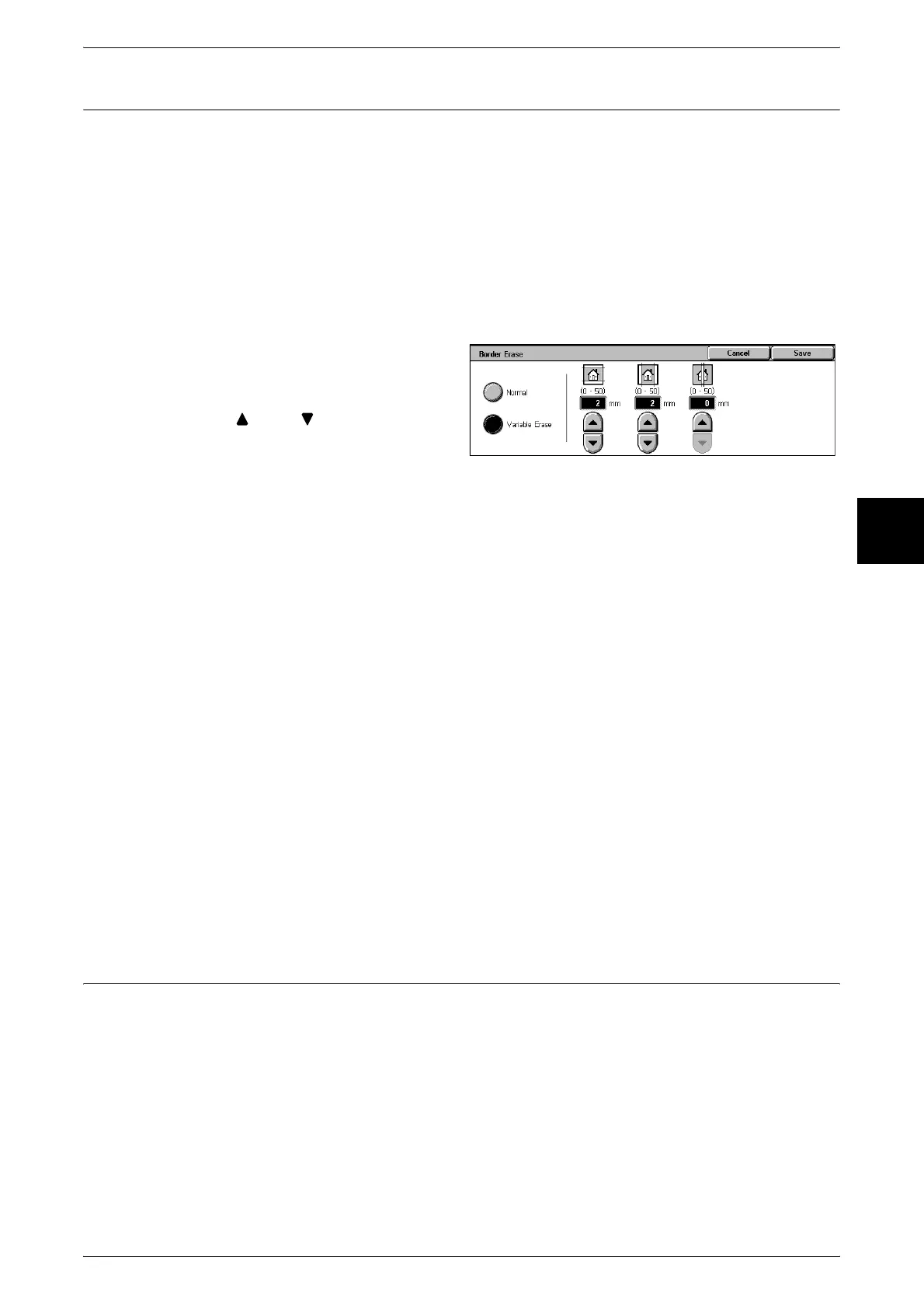 You can set the border erase width within the range from 0 to 50 mm in 1 mm