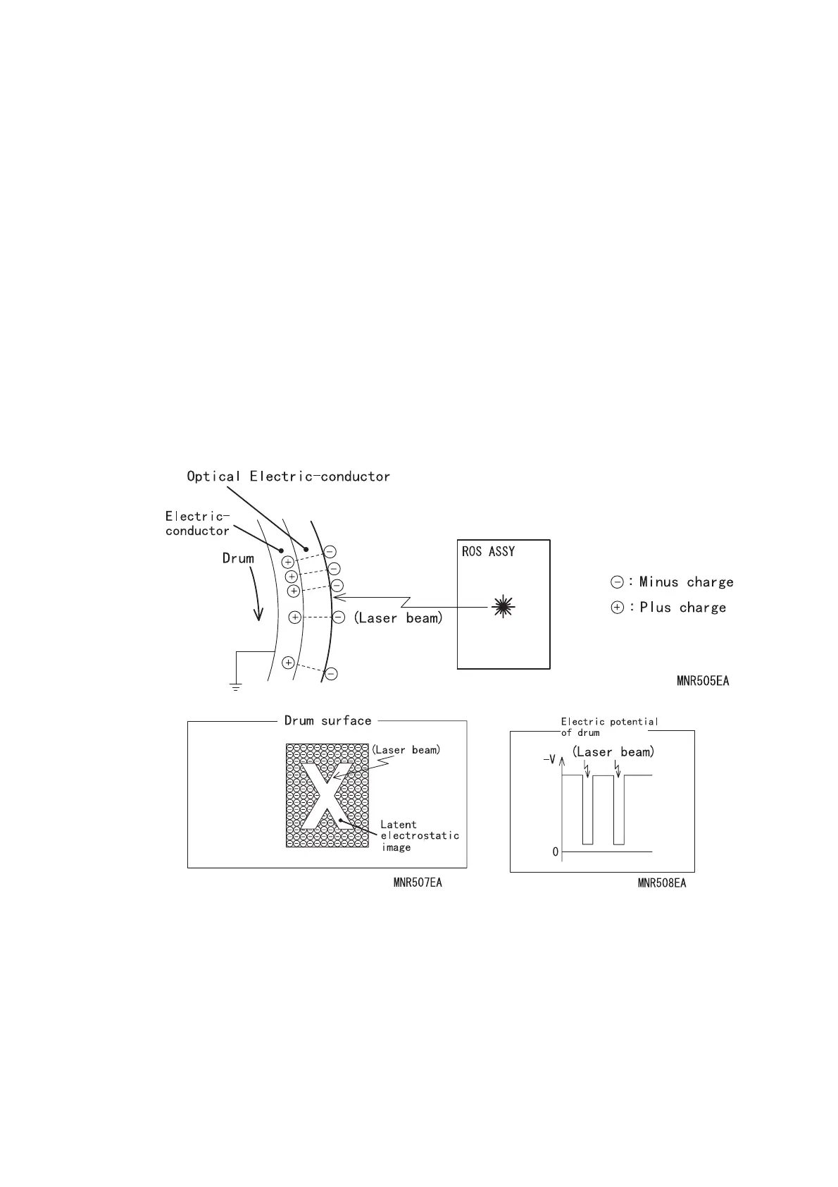 parts at lower minus level (potential rising) are generated on the drum surface to form an invisible