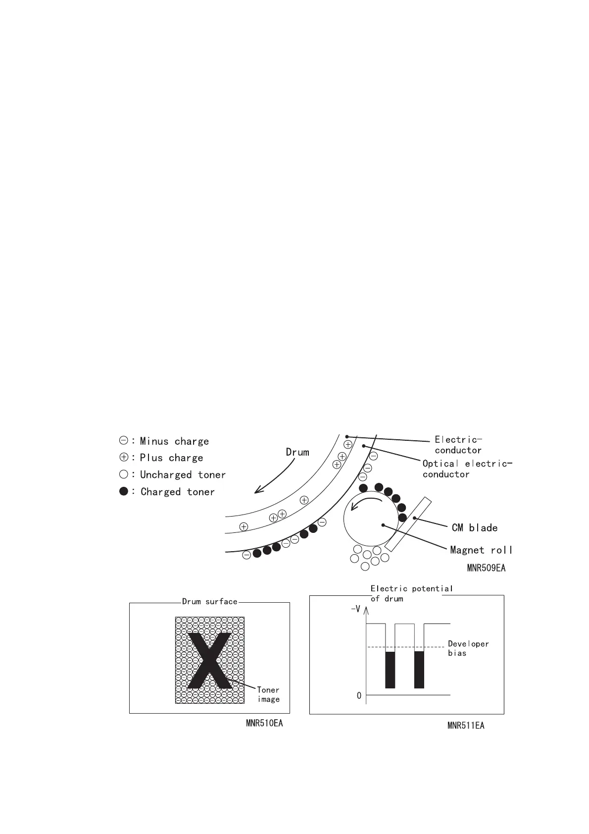 reduce on the drum surface, the potential is lower than the magnet roll; on parts on which minus