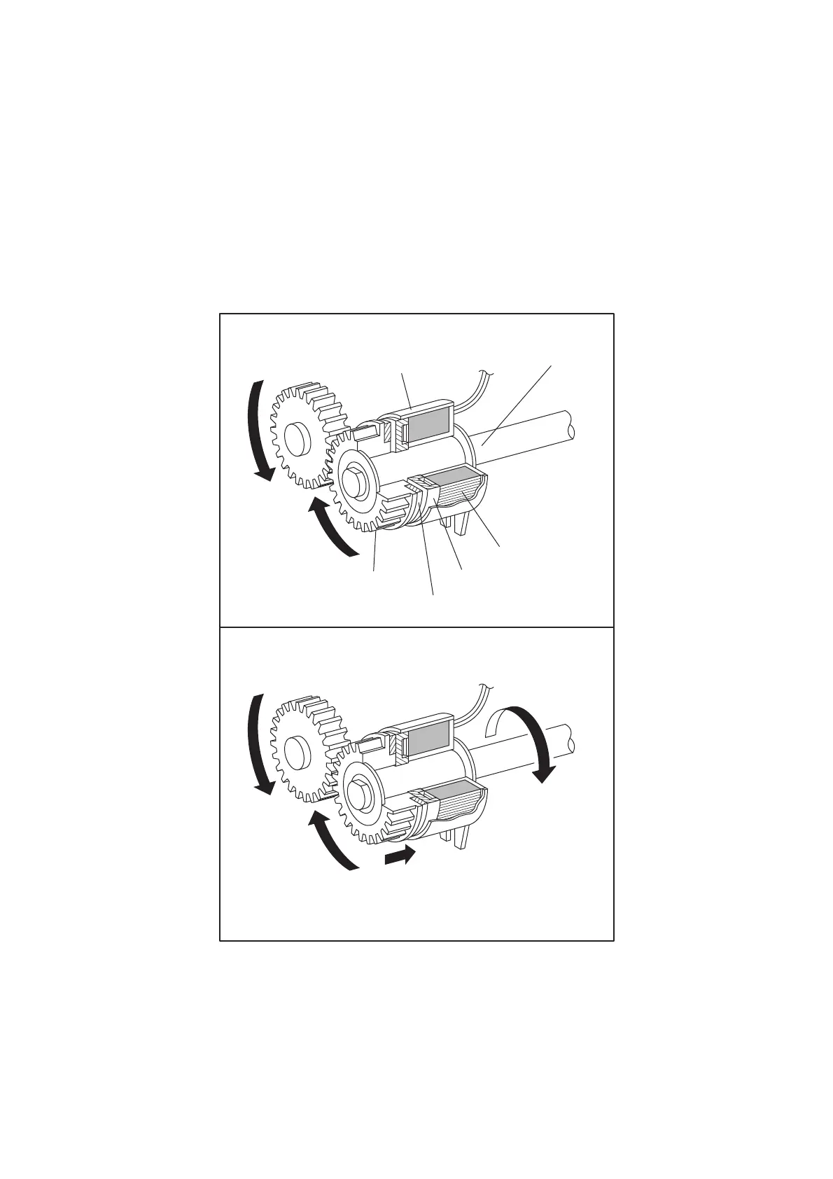 the coil inside the case and attracts the armature and gear to the rotating rotor, thereby rotating