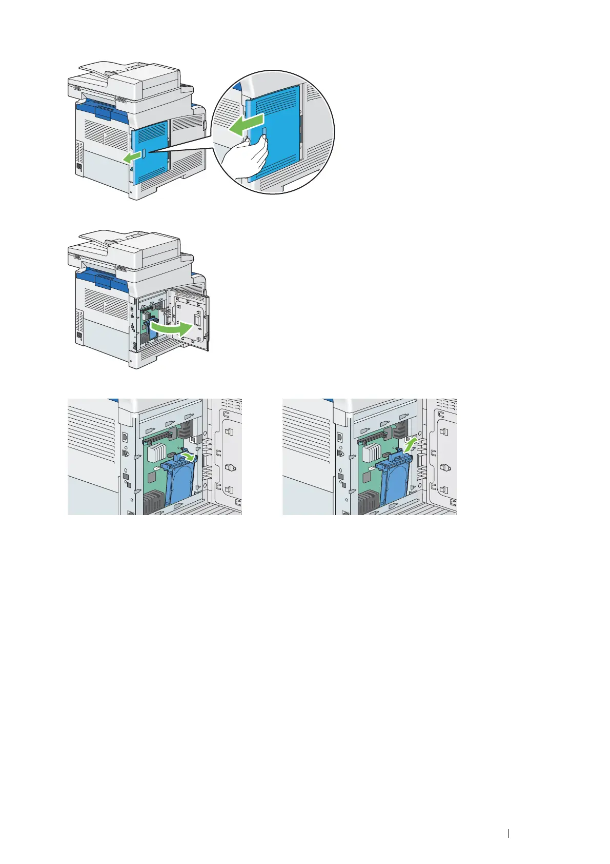 6 Remove the hard disk unit from the printer by releasing the hook of hard disk unit.
