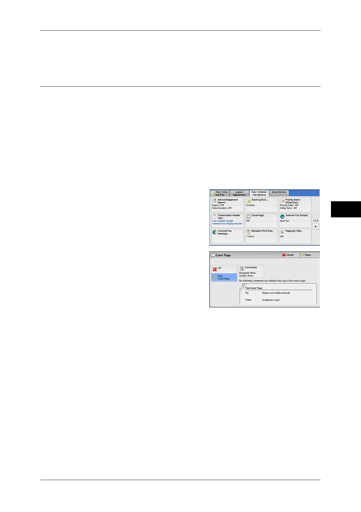 Note • When [Transmission Header Text] is set, the header information is not printed on the cover