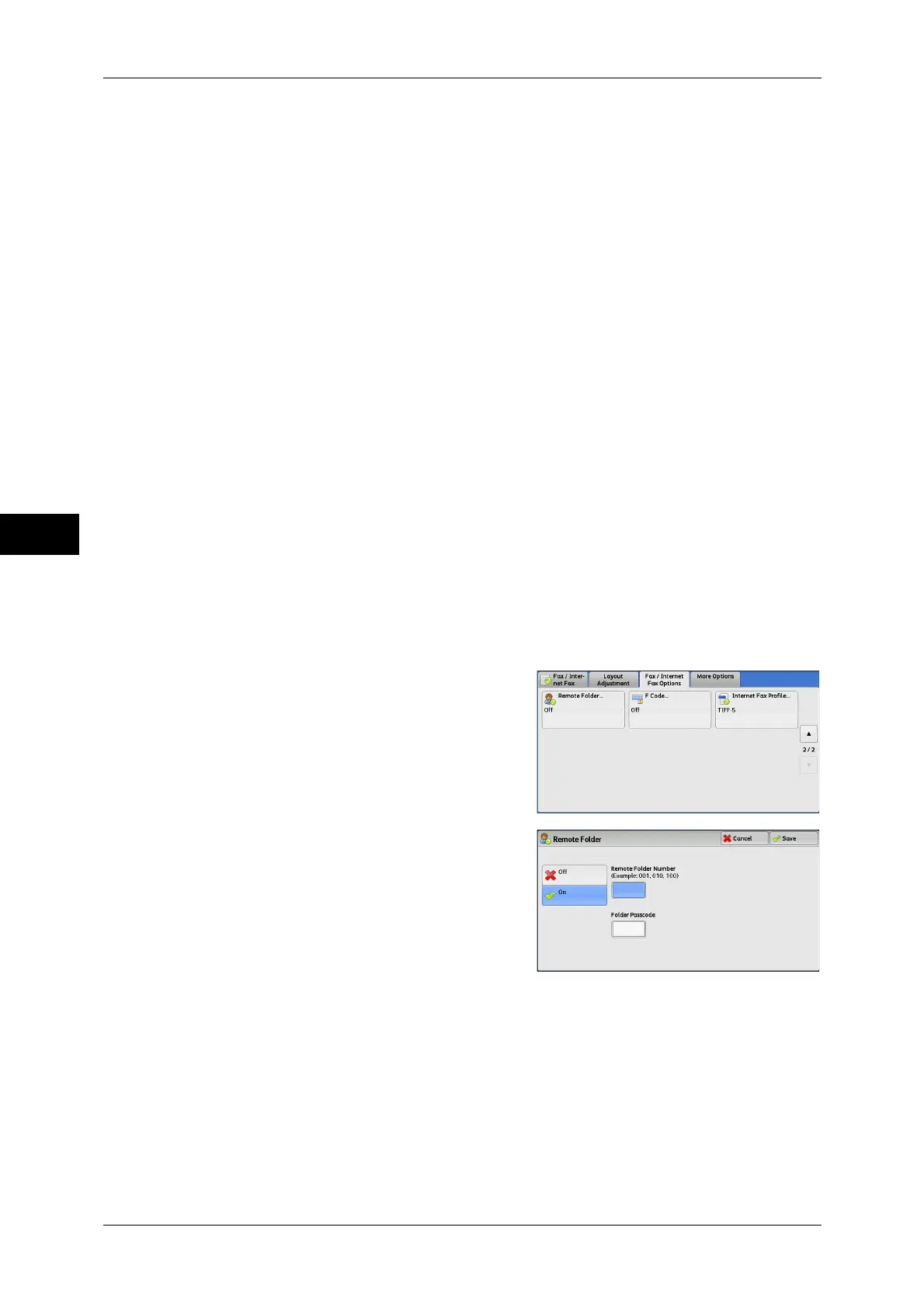 Enables the Remote Folder feature. Enter a folder number in [Remote Folder Number].
