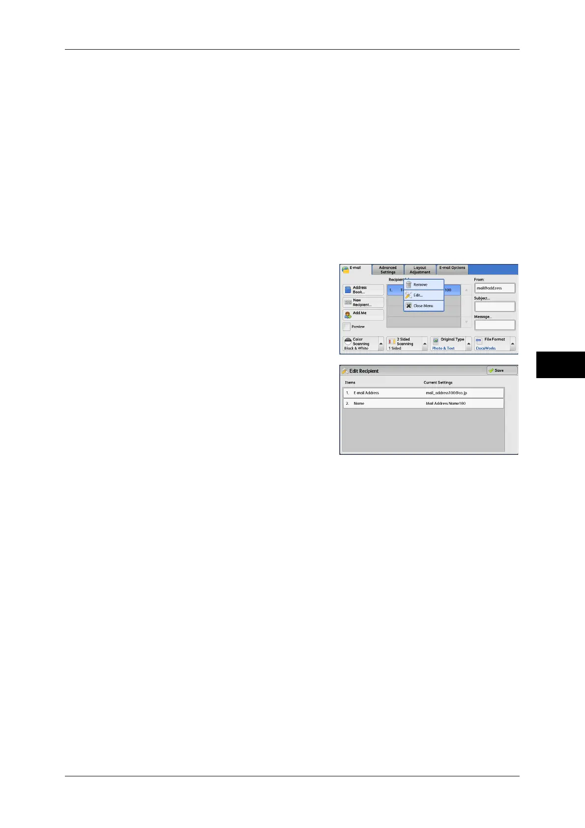 Refer to "[Edit Recipient] Screen" (P.237).