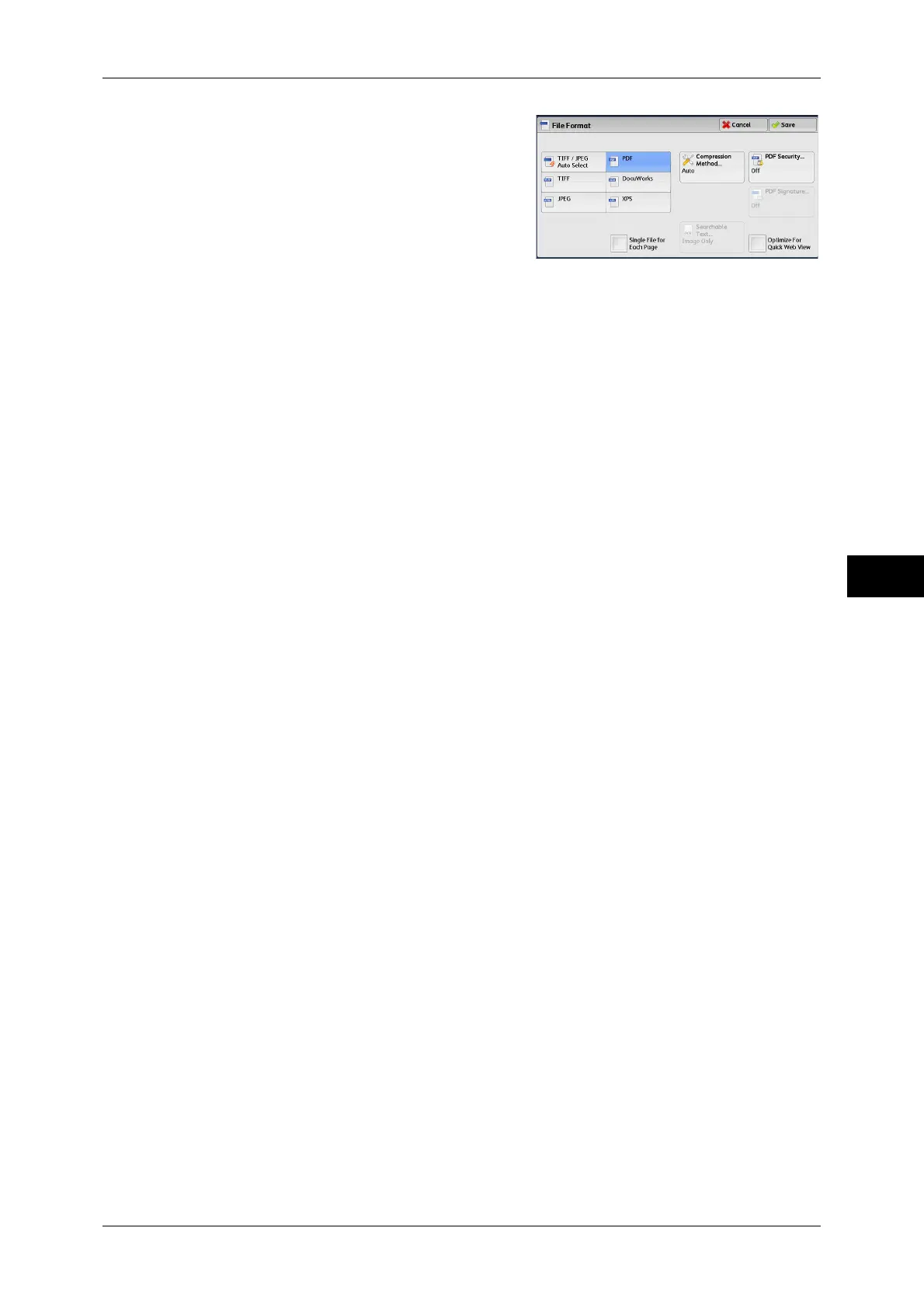 • If you select [PDF] and then select [Manual Select] in [Compression Method] under [File