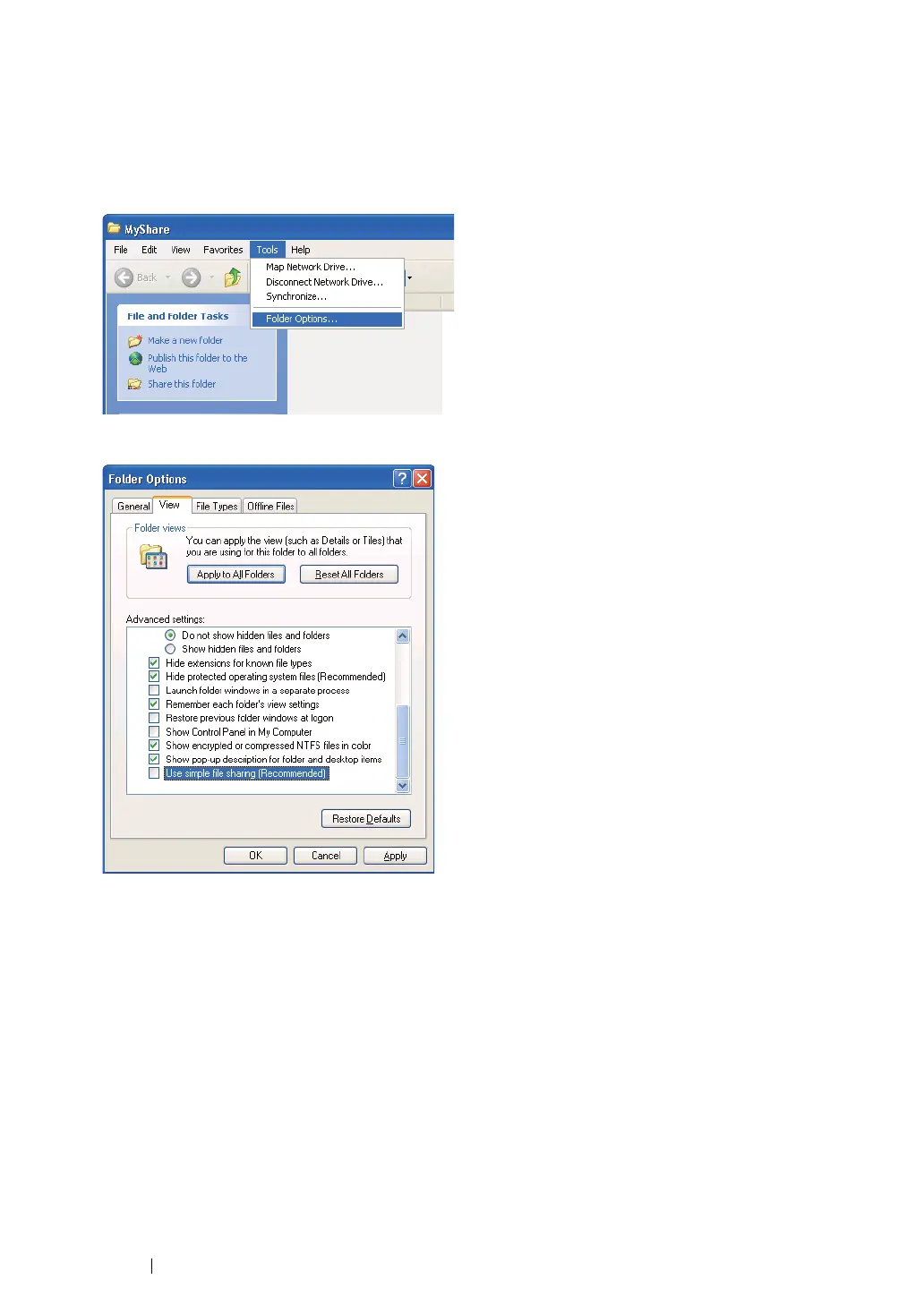 Click the View tab, and then deselect the Use simple file sharing (Recommended) check box.