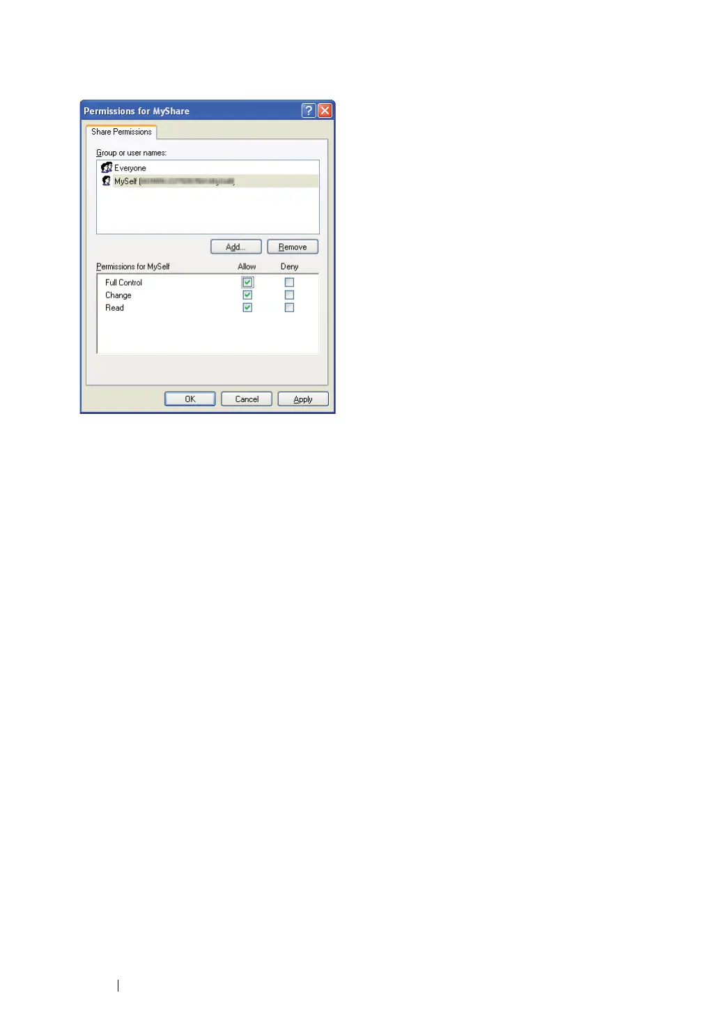 Click the user login name that you have just entered. Select the Full Control check box. This will