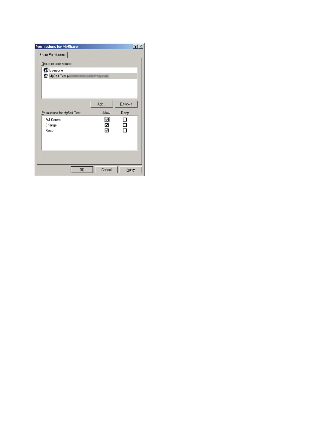 Click the user login name that you have just entered. Select the Full Control check box. This will