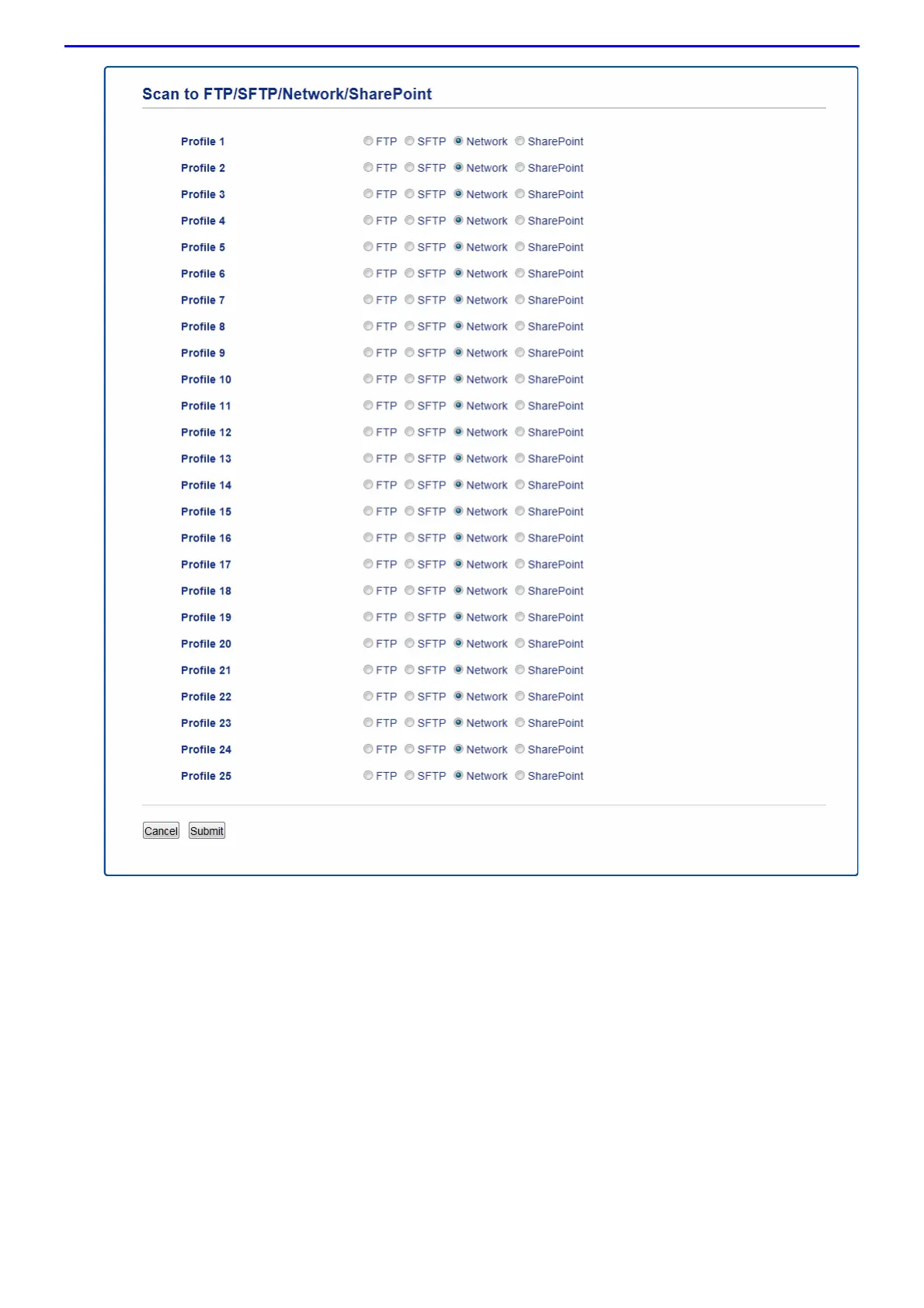 Click the Scan to FTP/SFTP/Network/SharePoint Profile menu in the left navigation bar.