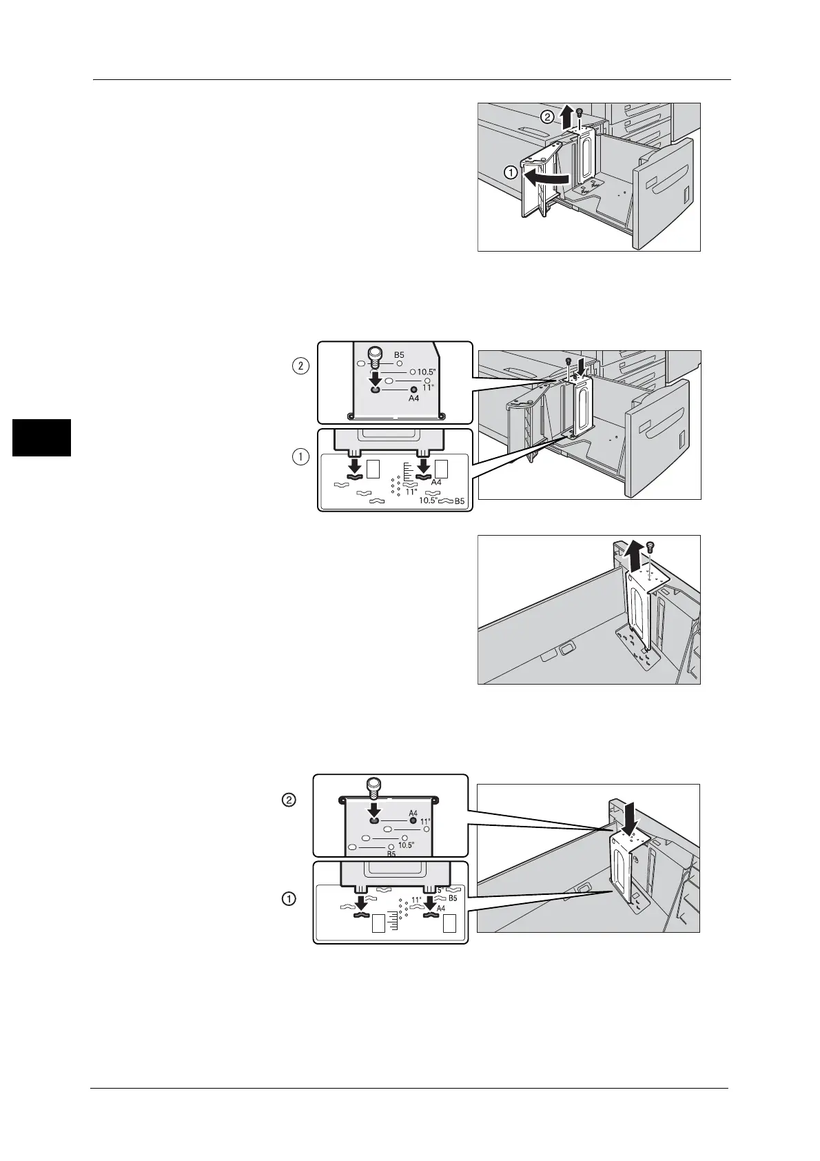 paper size (1). Insert the protrusion on the tray into a hole corresponding to the paper size