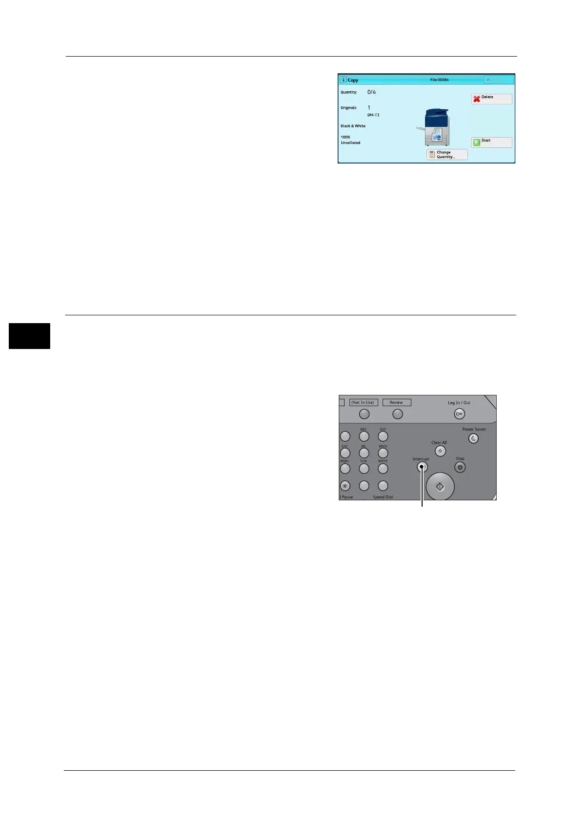 • Even when the <Interrupt> button is pressed, the machine may not accept another copy job if 10
