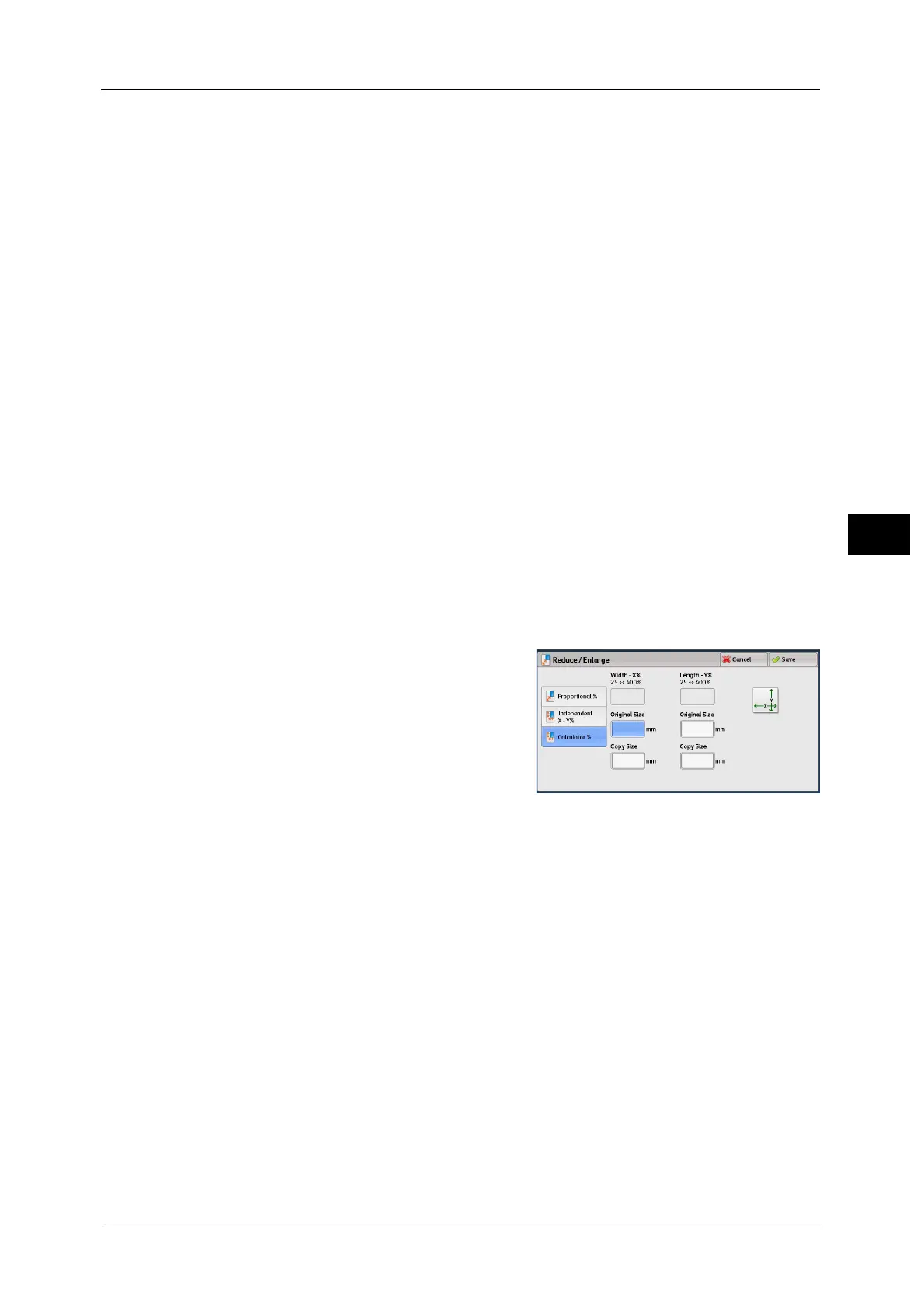 Note •Selecting [Calculator %] allows you to set copy ratios. The values entered in [Original Size] and