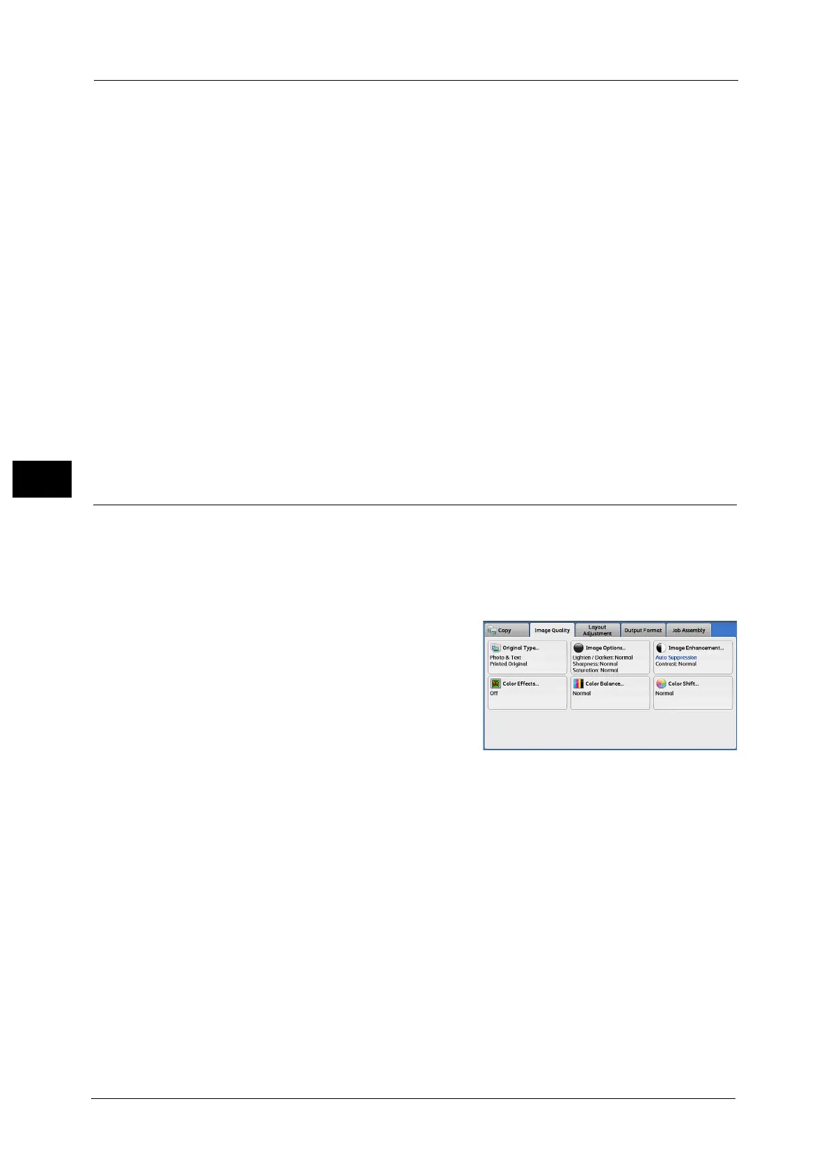 Copies with the [Image Enhancement], [Image Options], [Color Shift], and [Color Balance]