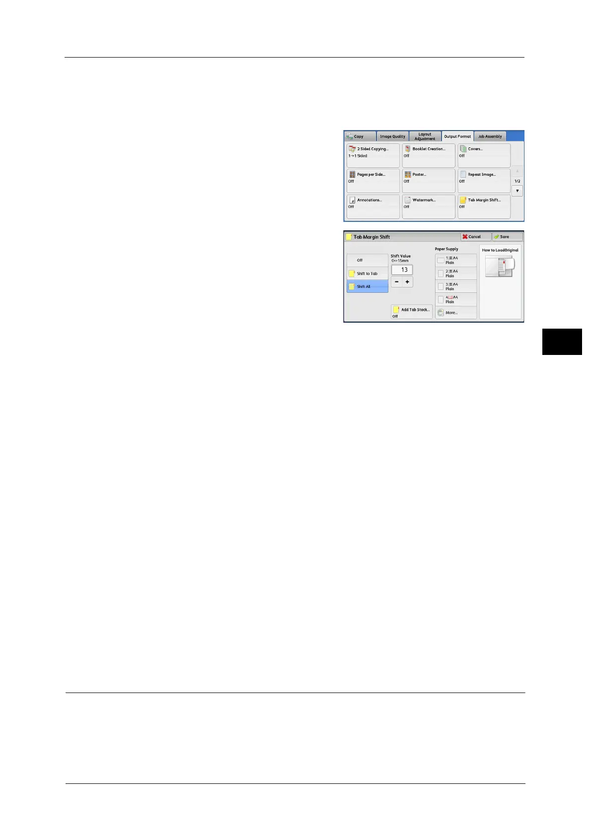 Copies the image located on the edge of the document onto the tab area of tab stock paper.