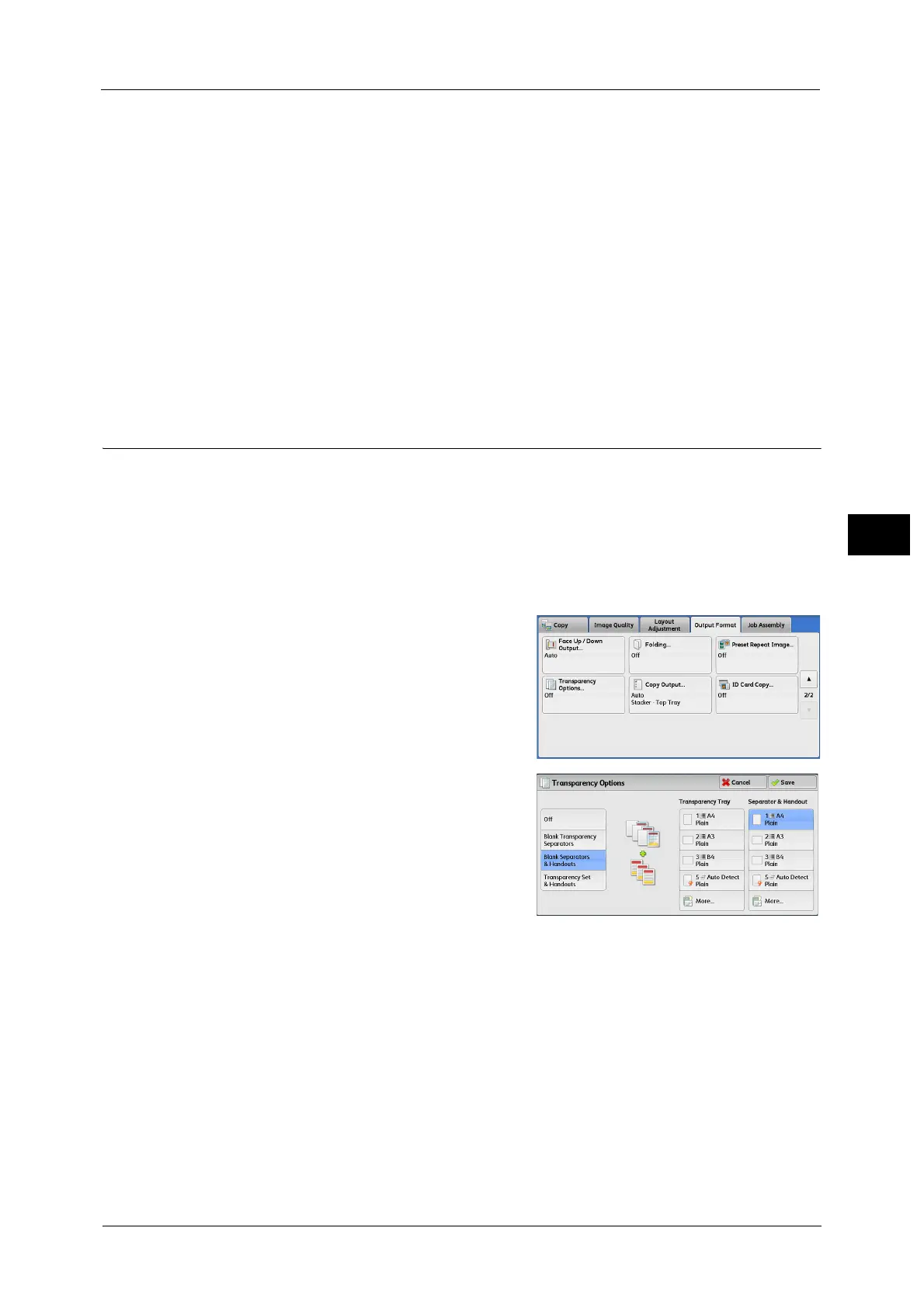 Inserts a separator each time a transparency is copied. Only one set of copies can be made.
