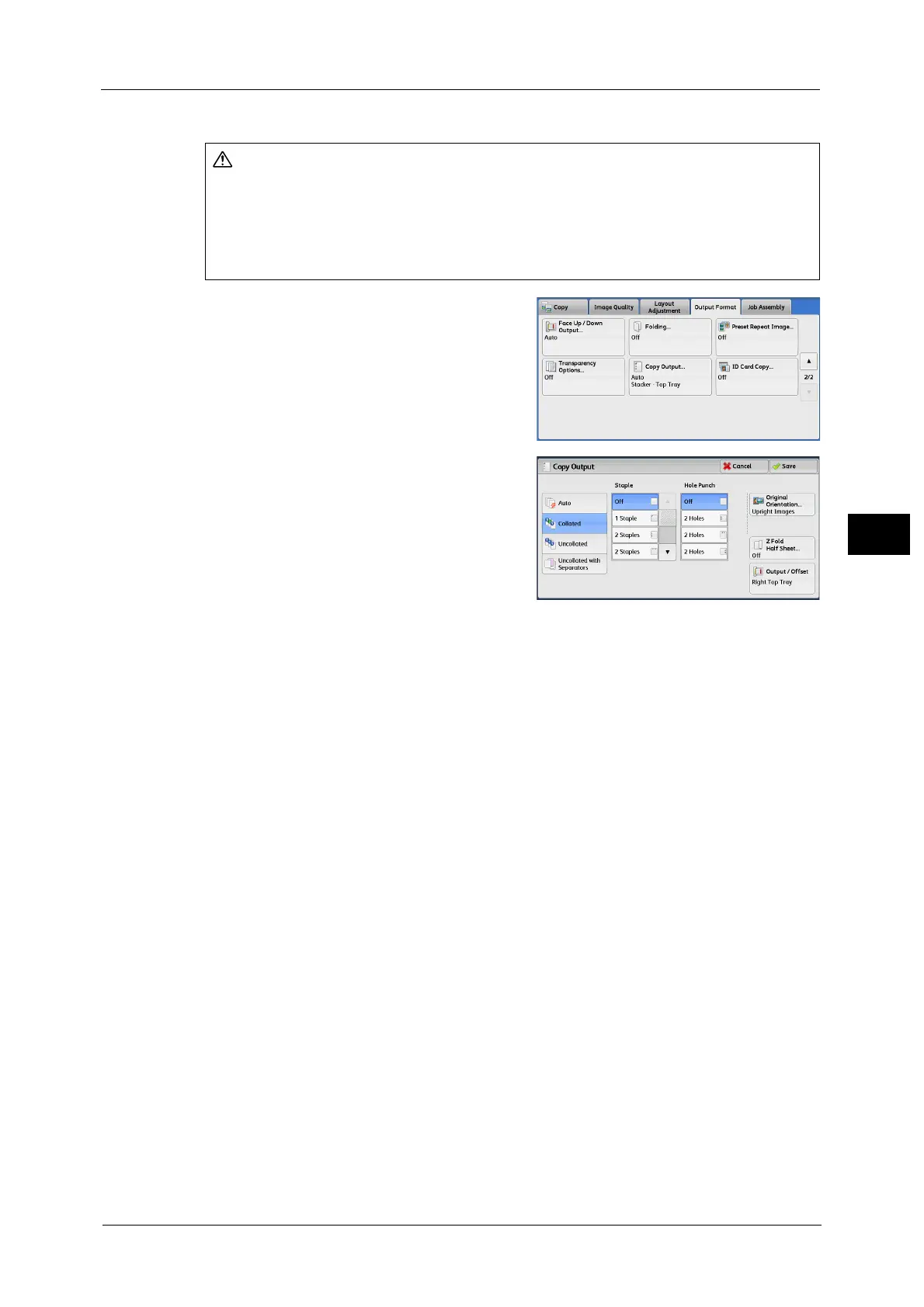 Specify the position for stapling. The C3 Finisher and the C3 Finisher with Booklet Maker are