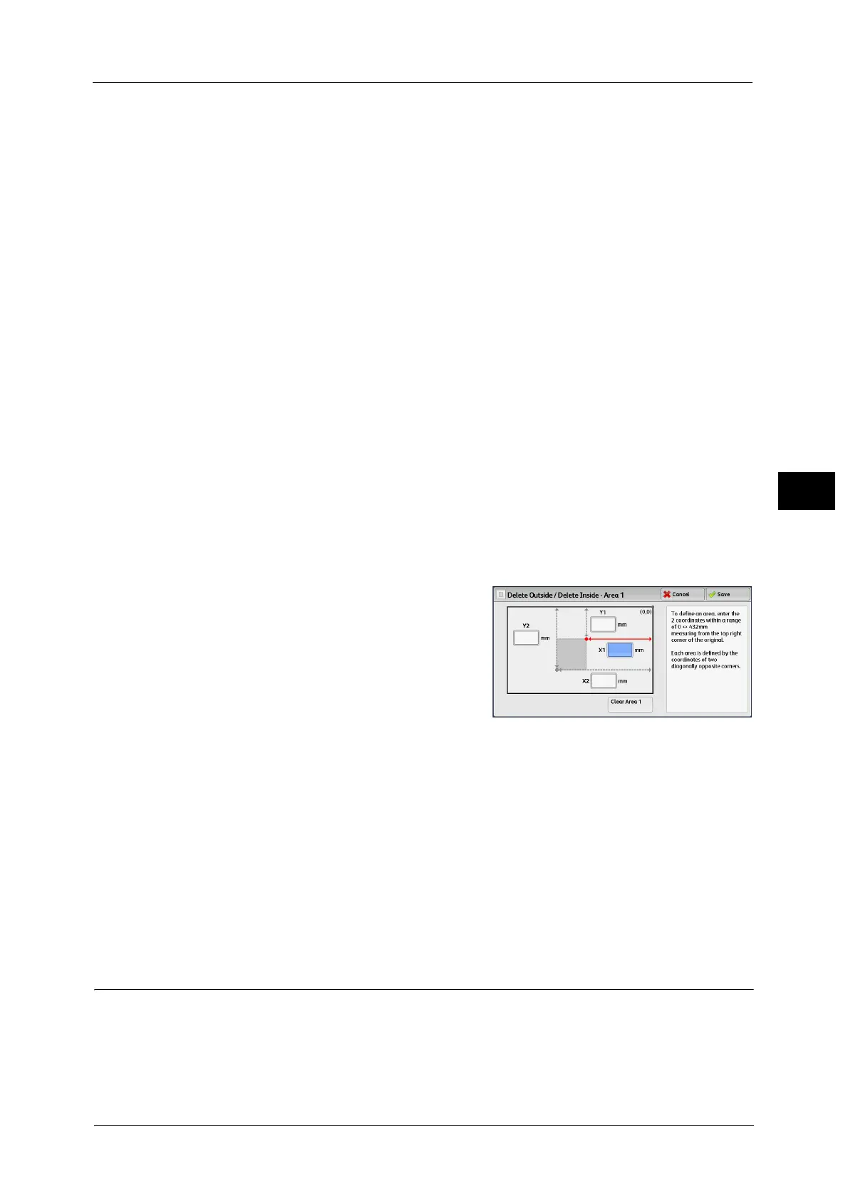 [Delete Outside/Delete Inside - Area 1 (Area 2 or Area 3)] Screen