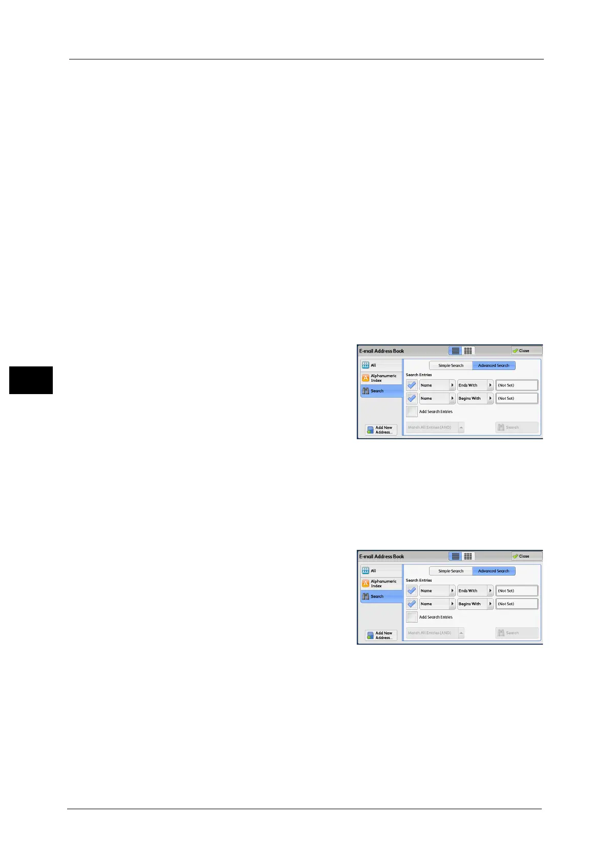 Searches by specified keyword for [Simple Search], or by search entries for [Advanced