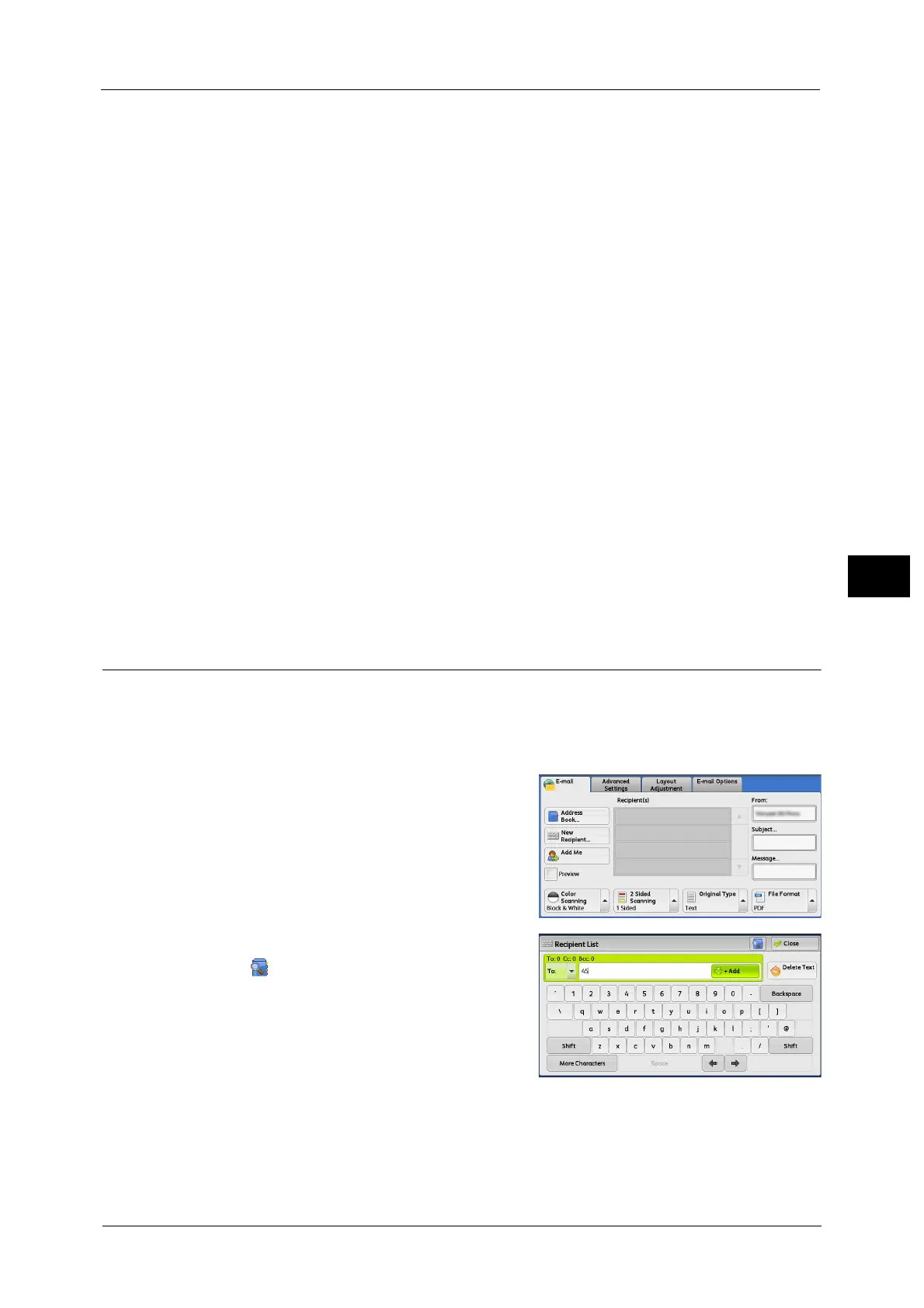 You can specify the recipient's e-mail address using the keyboard. Enter a part of the