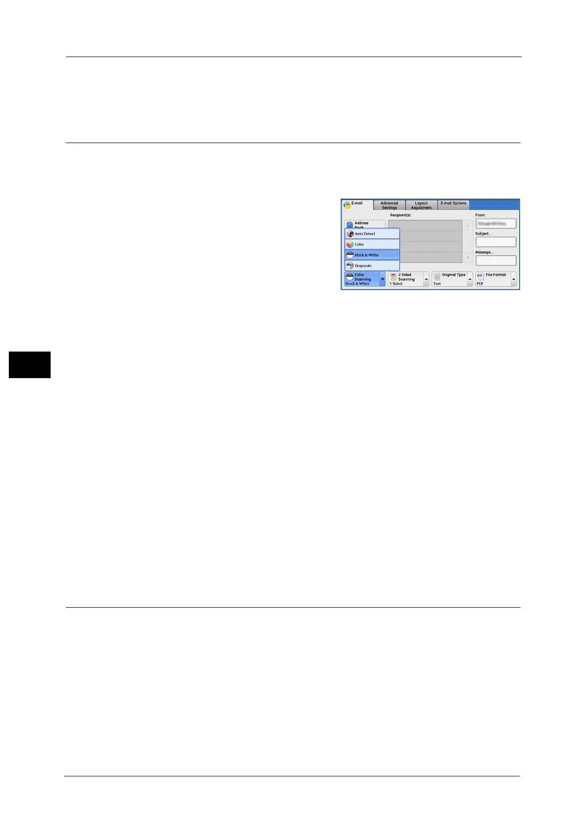 Note •[Color Scanning] is not displayed on the [E-mail] screen depending on the settings in the System
