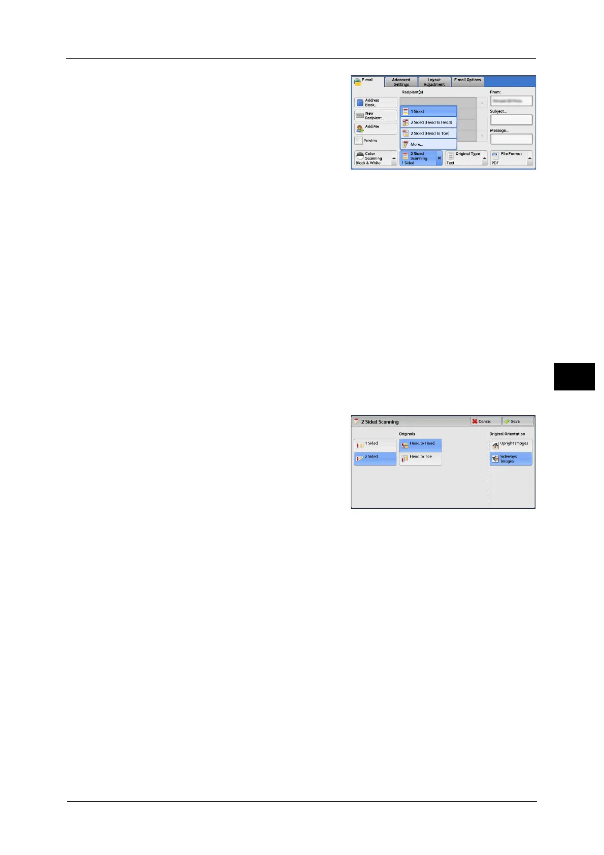 Refer to "[2 Sided Scanning] Screen" (P.245).