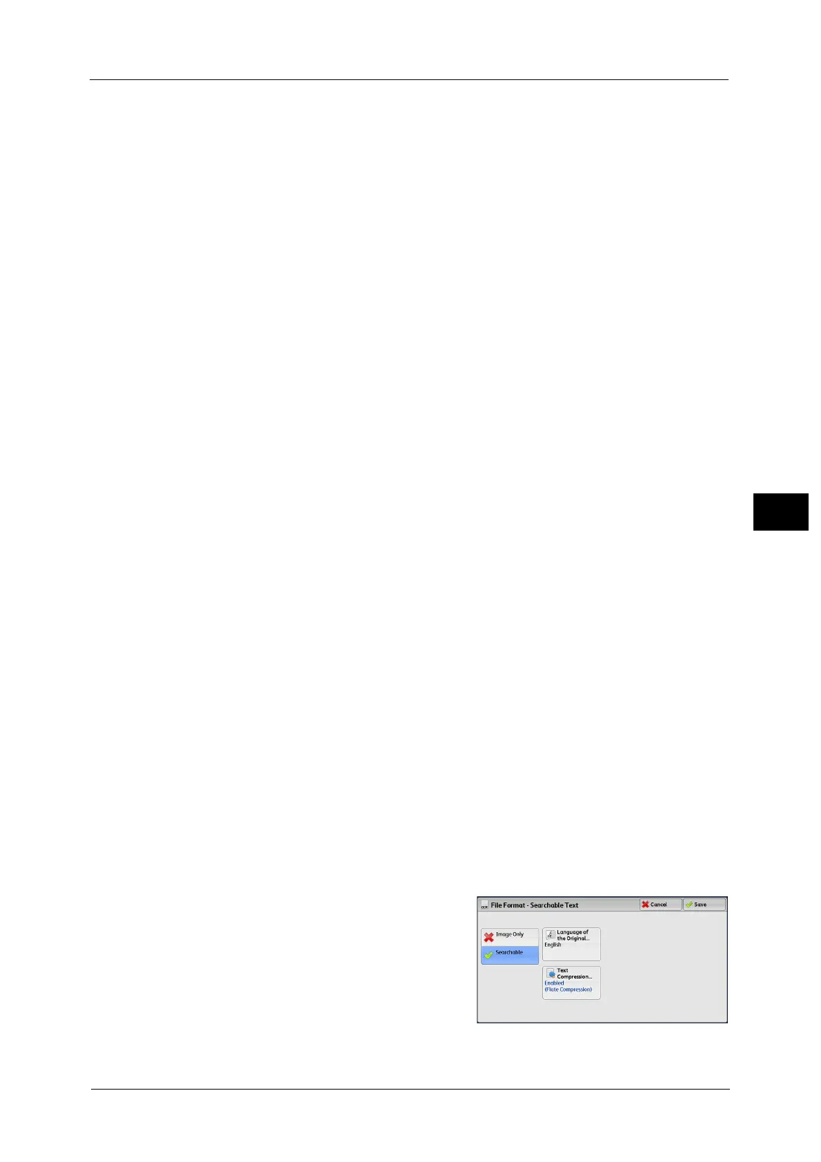 Allows you to select whether to perform character recognition in PDF and DocuWorks files.