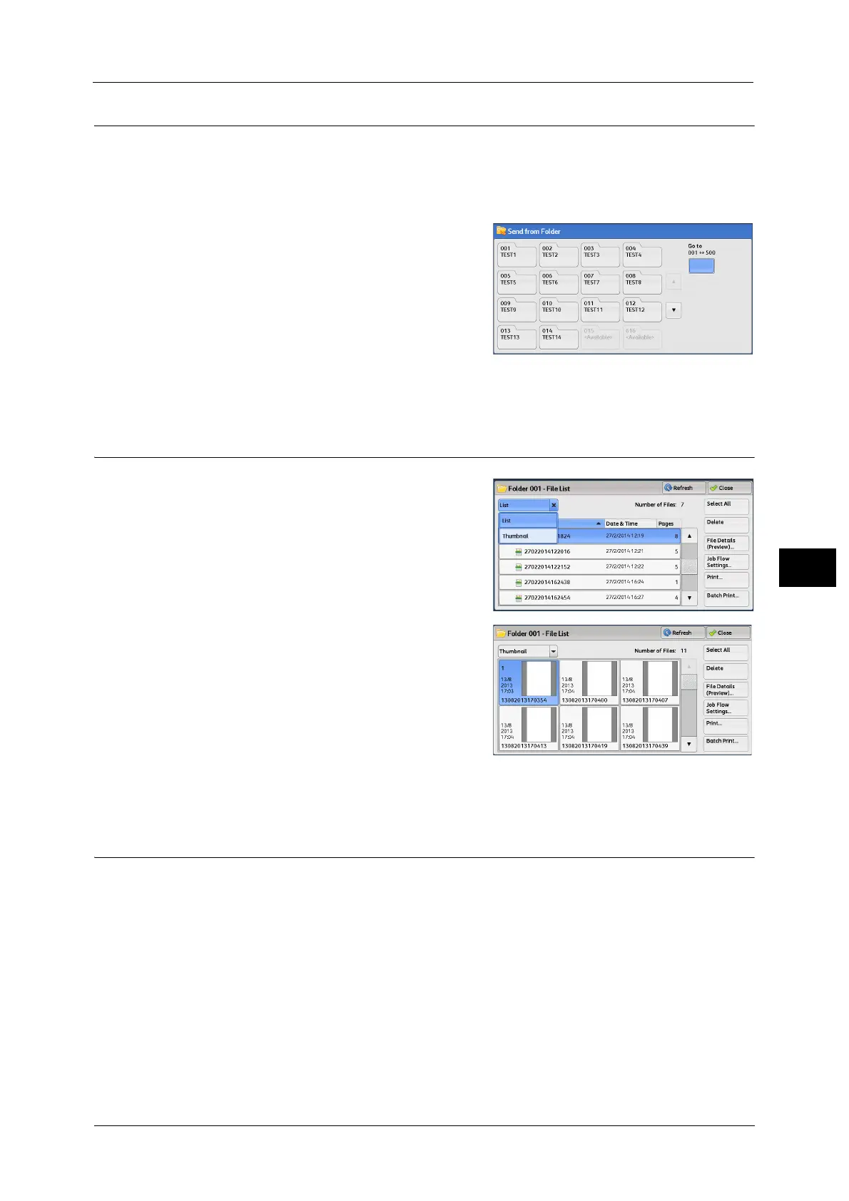 For information on the [File List] screen, refer to "Checking/Operating Files in a Folder" (P.309).
