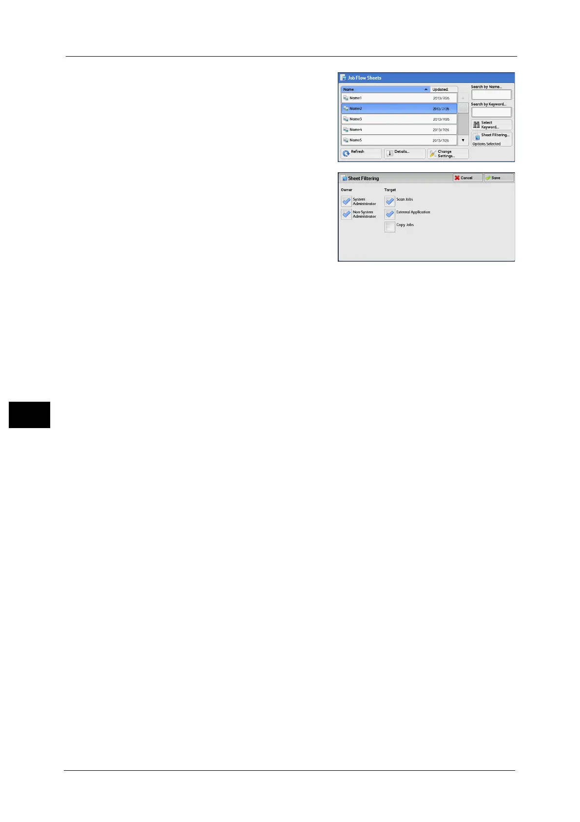 Note Job flow sheets whose [Target] is [Folder] can be used only from [Send from Folder].