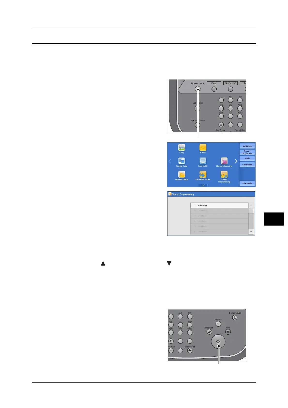 When you call a specified stored program, the last screen shown when you registered the