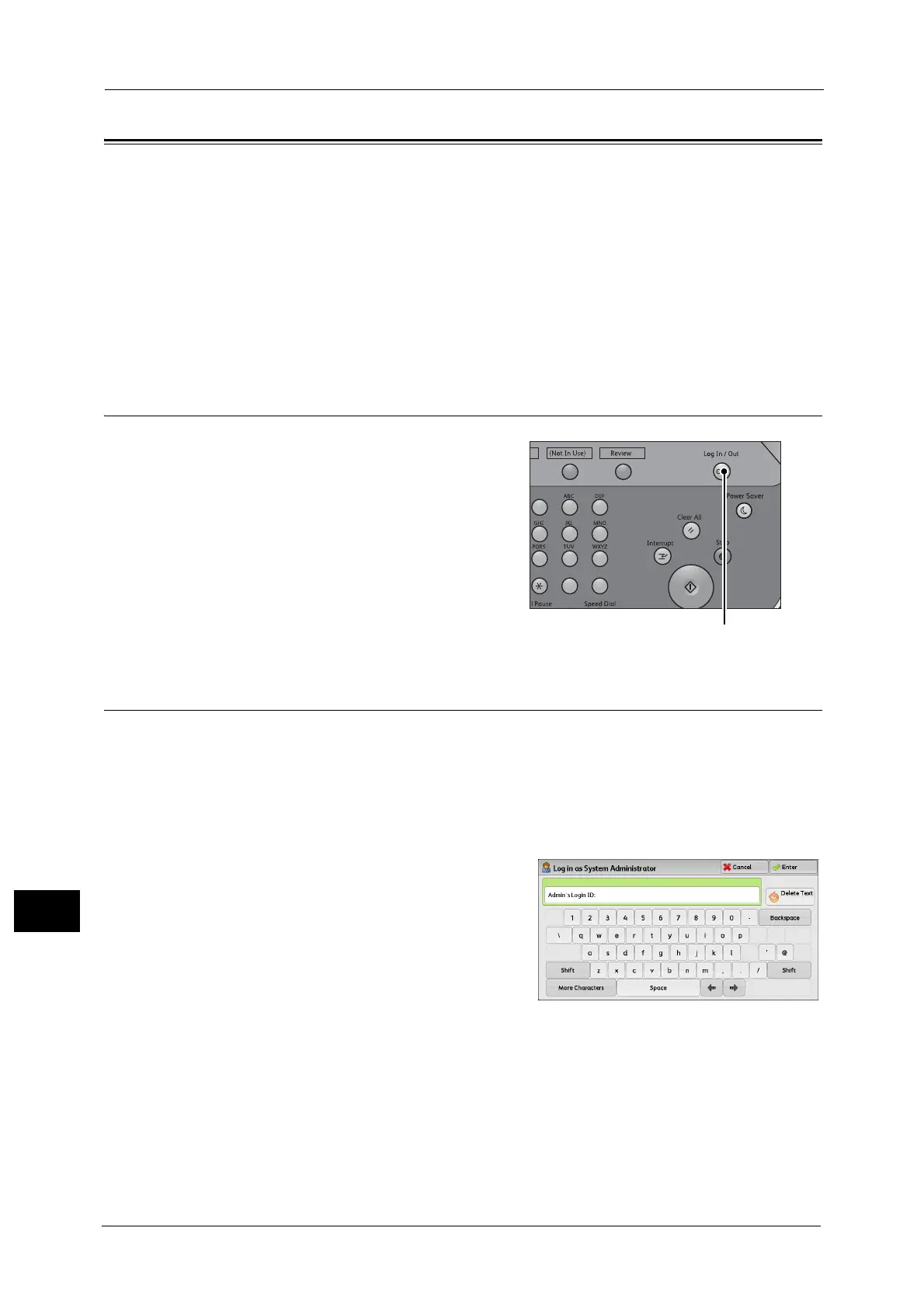 • The <Log In/Out> button is lit when the machine enters the System Administration mode.