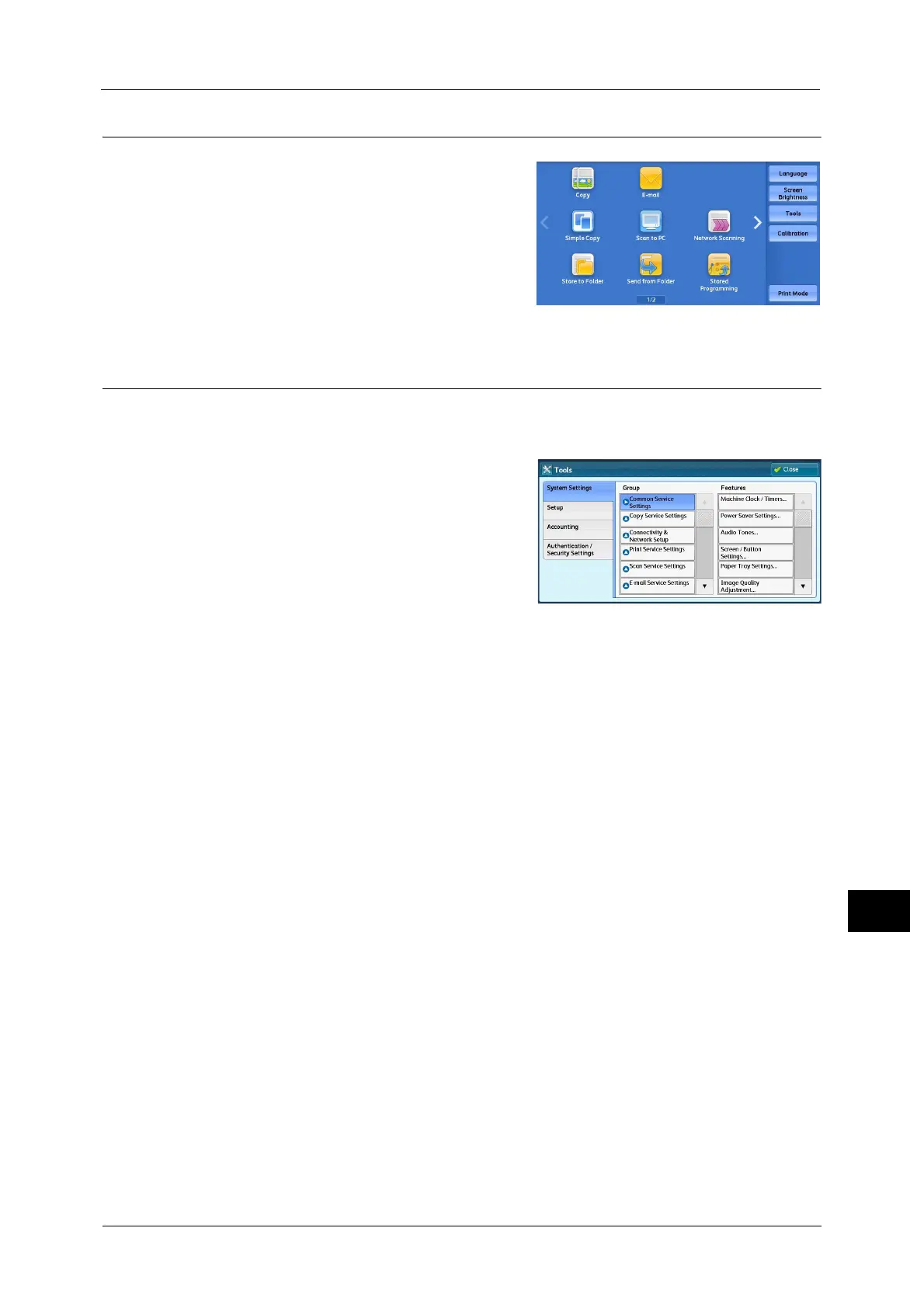 For the items that can be selected on the [Tools] screen, refer to "Tools Menu List" (P.408).