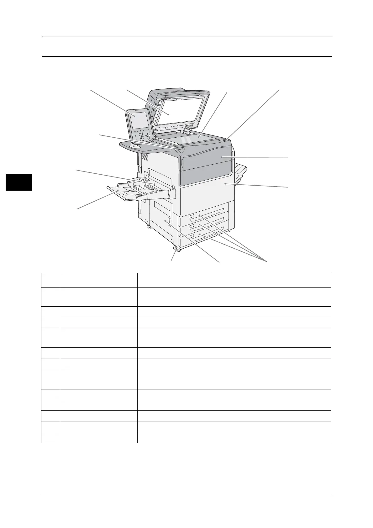 11 Tray 5 (Bypass) top cover Open the top cover to clear paper jams.