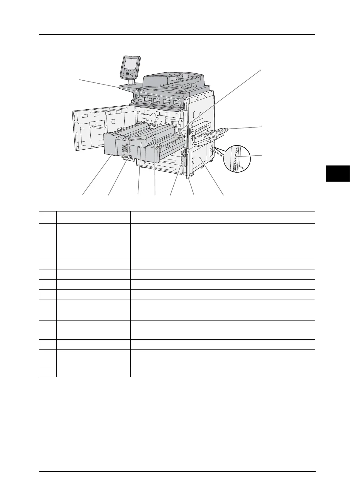 1 Main power switch Switches the main power of the machine on and off. Always follow the
