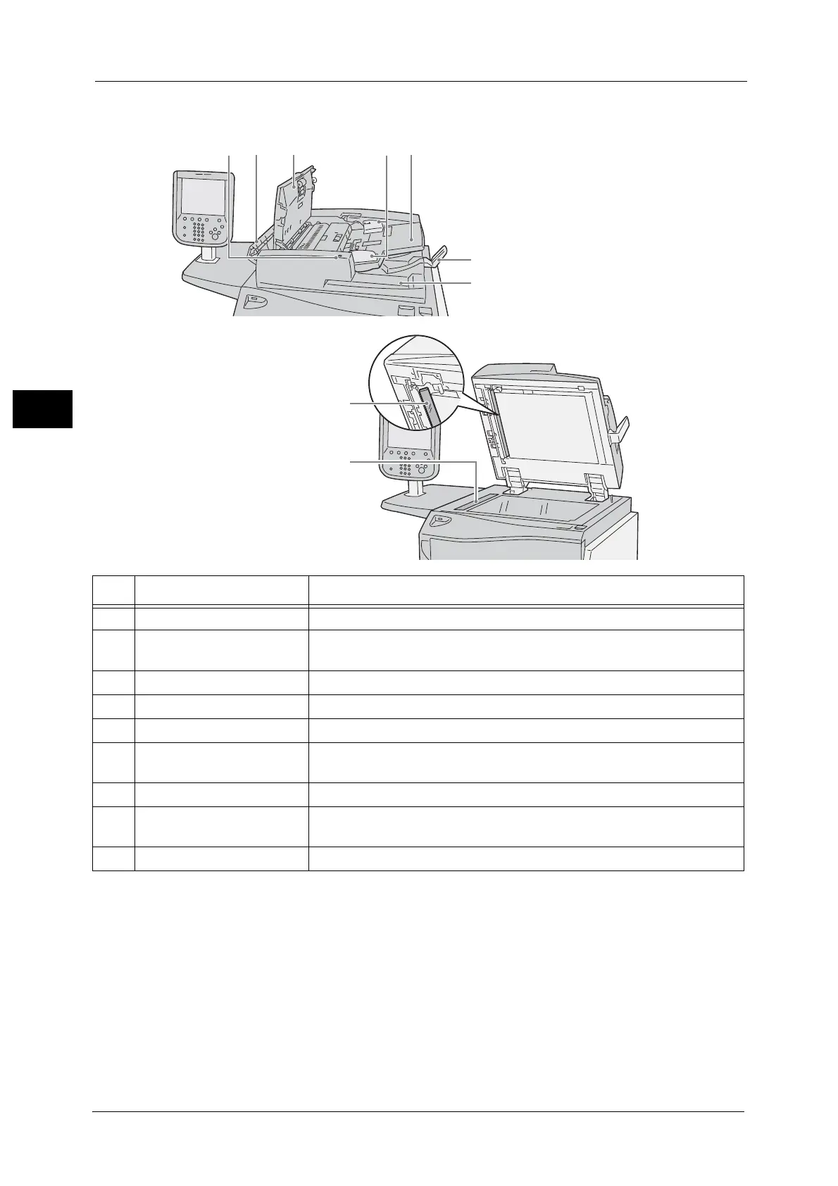 2 Document feeder left cover This cover slightly opens when the document feeder top cover is opened.
