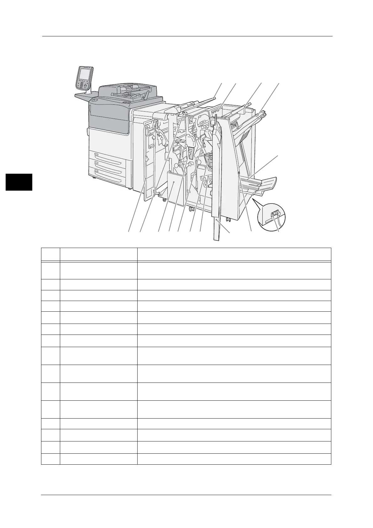 8 Finisher right door Open this cover to clear paper jams, replace a staple cartridge, or remove