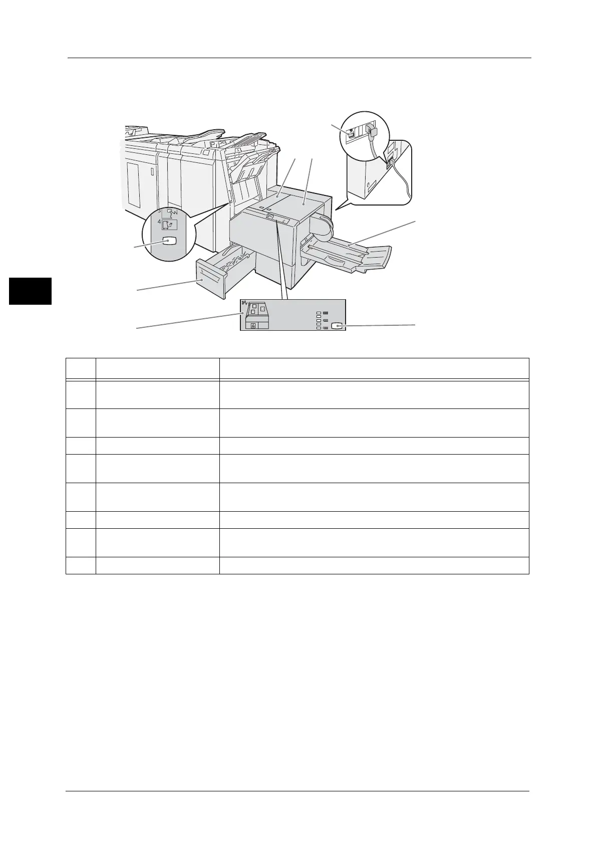 8 Booklet tray button Press this button to deliver booklets to retrieval position.