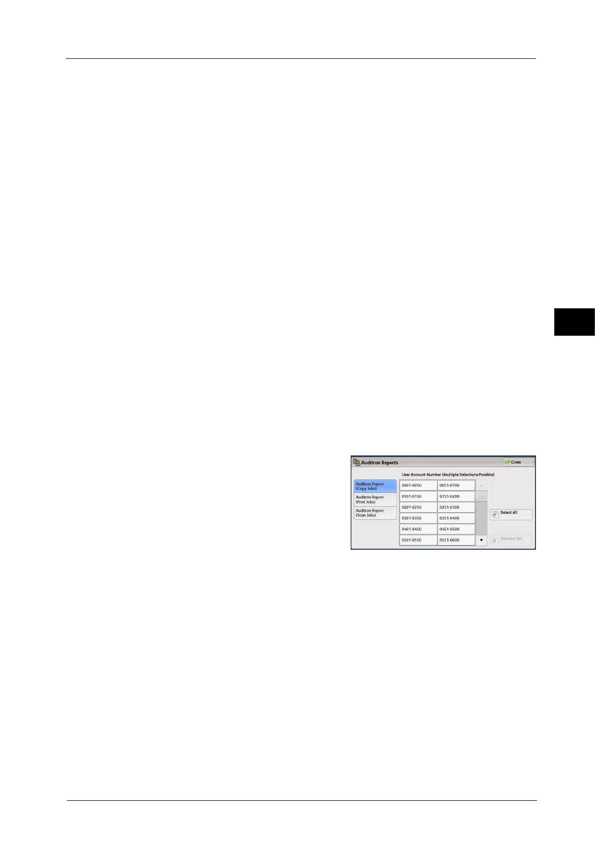 Note •To display the [Auditron Reports] screen, select the <Machine Status> button, and then select