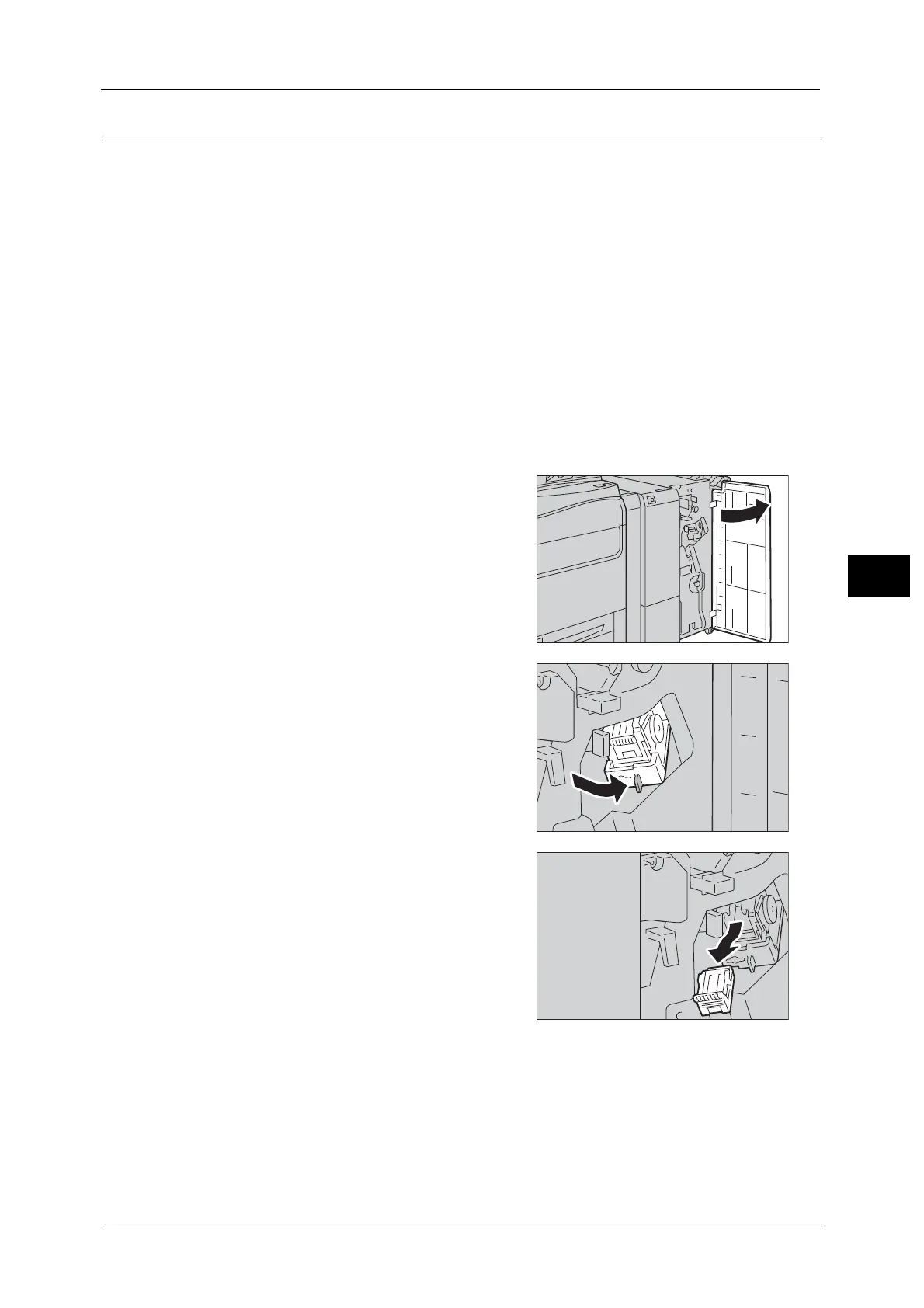 The following describes how to replace a staple cartridge for the Finisher C3 with Booklet