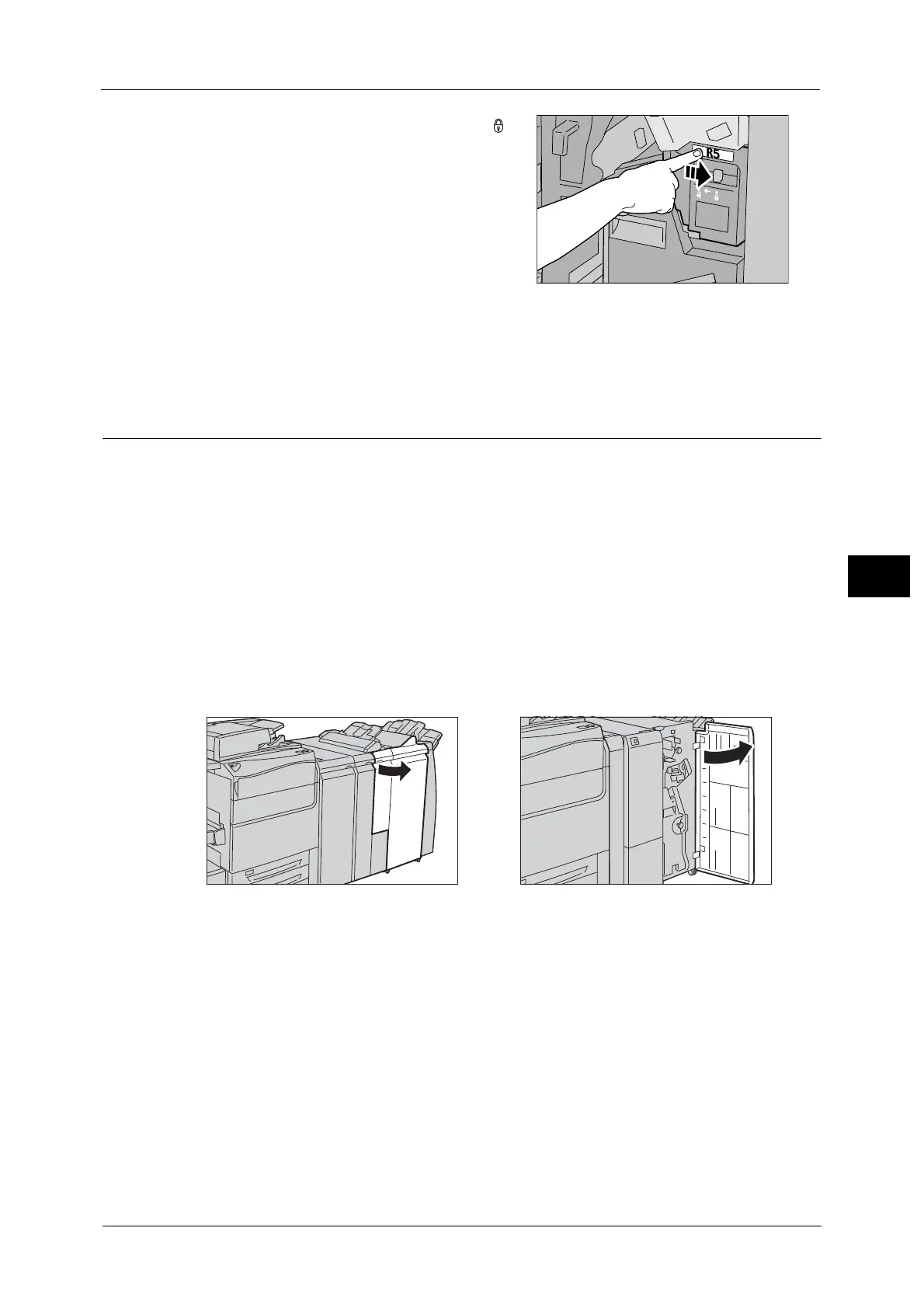 1 Make sure that the machine has stopped, and open the finisher right door.