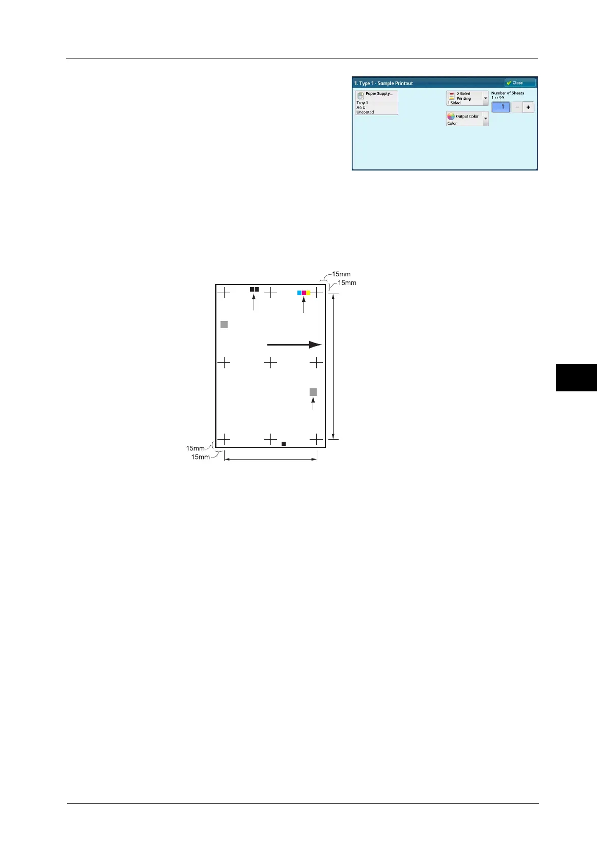 If the position of the sample printout is correct, a line is printed at a position 15 mm from