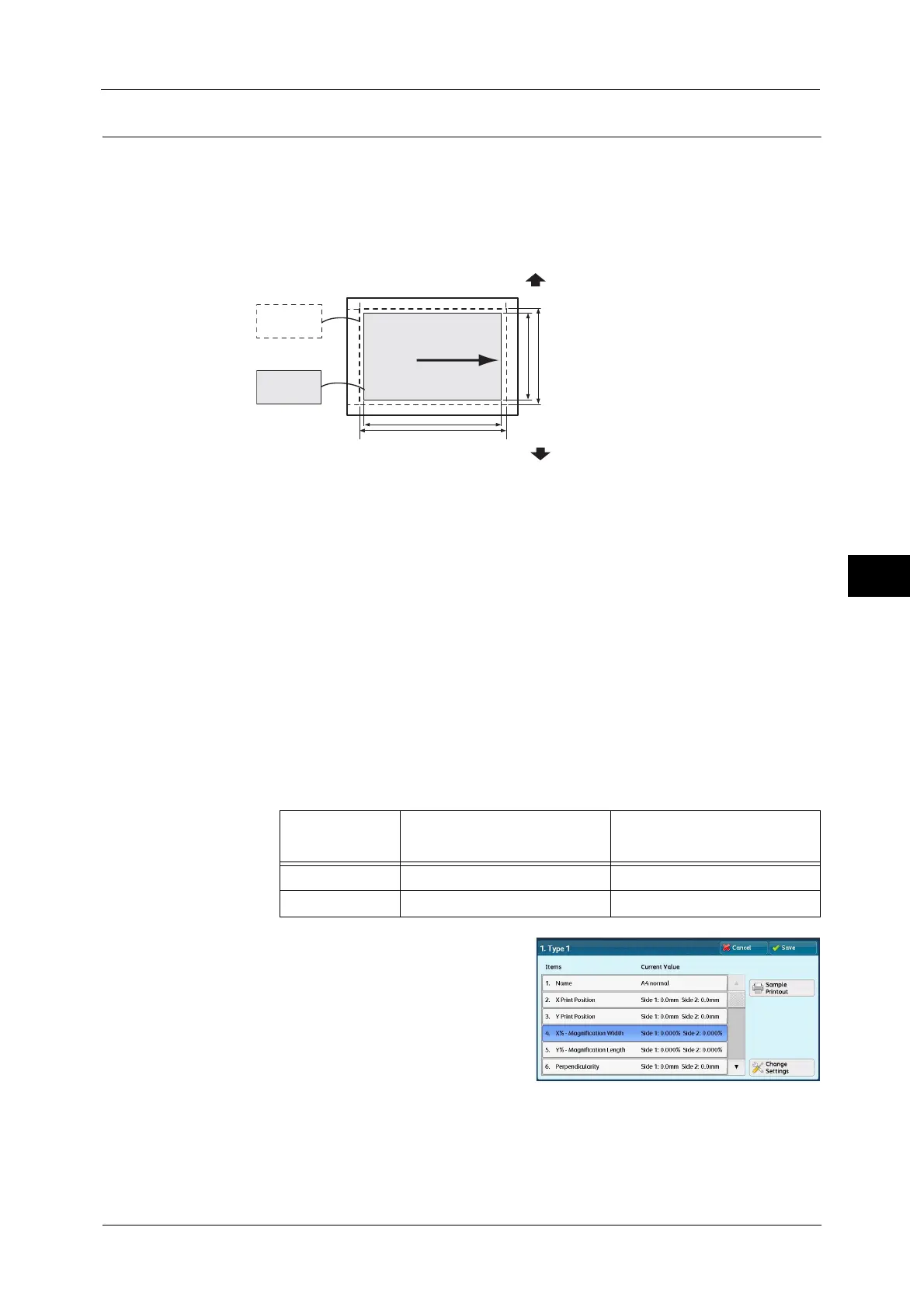 the current setting values of [Side 1] and [Side 2] of [X% - Magnification Width].