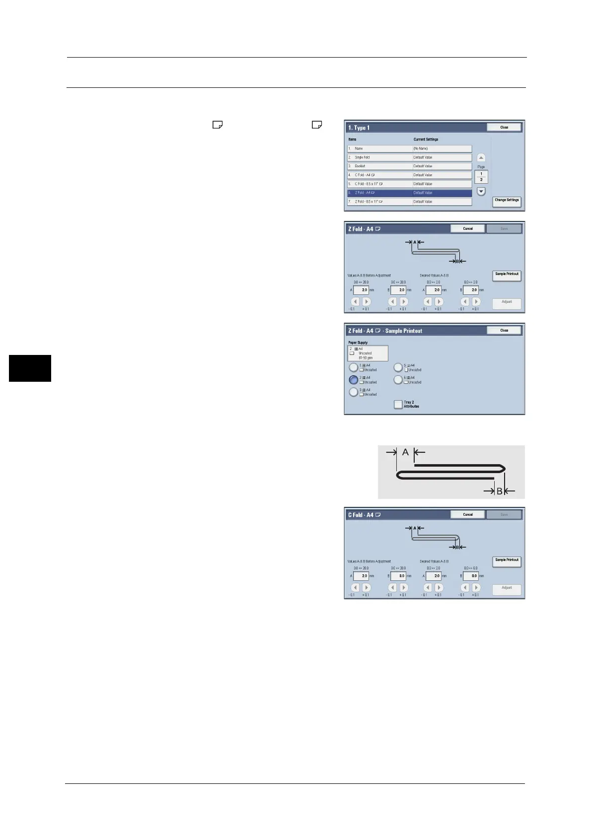 5 Check the sample printout, measuring the A and B fold