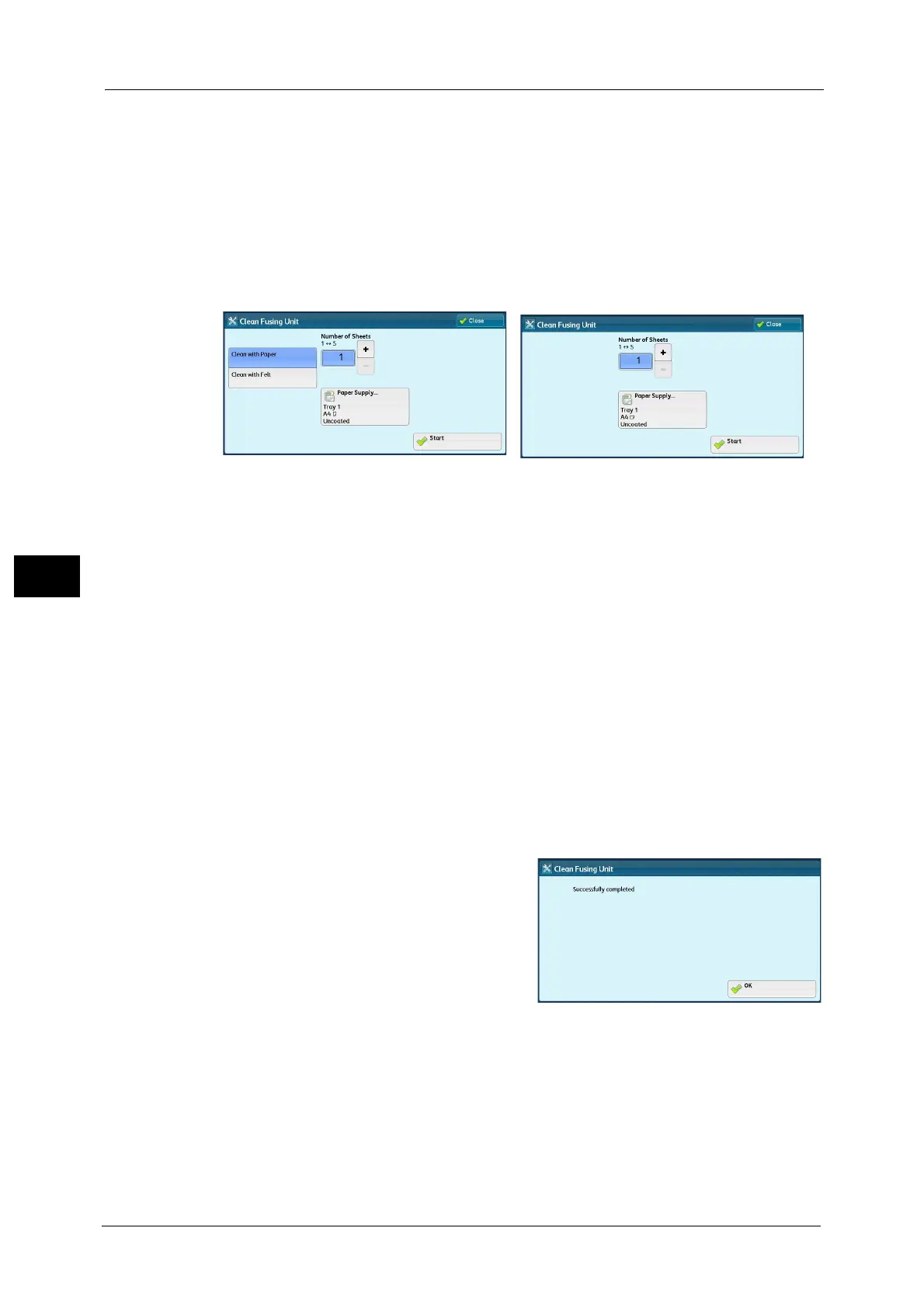 Note • The Cleaning Fusing Unit screen varies depending on the authentication mode. When you log in as
