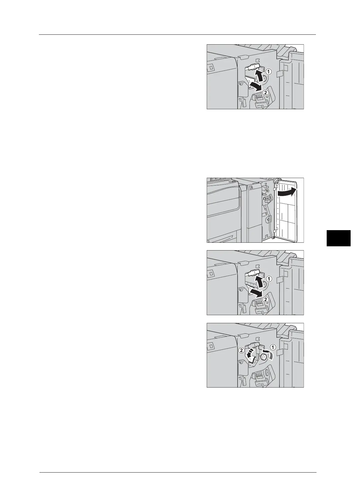Note • If the finisher front door is not completely closed, a message will appear and the machine remains