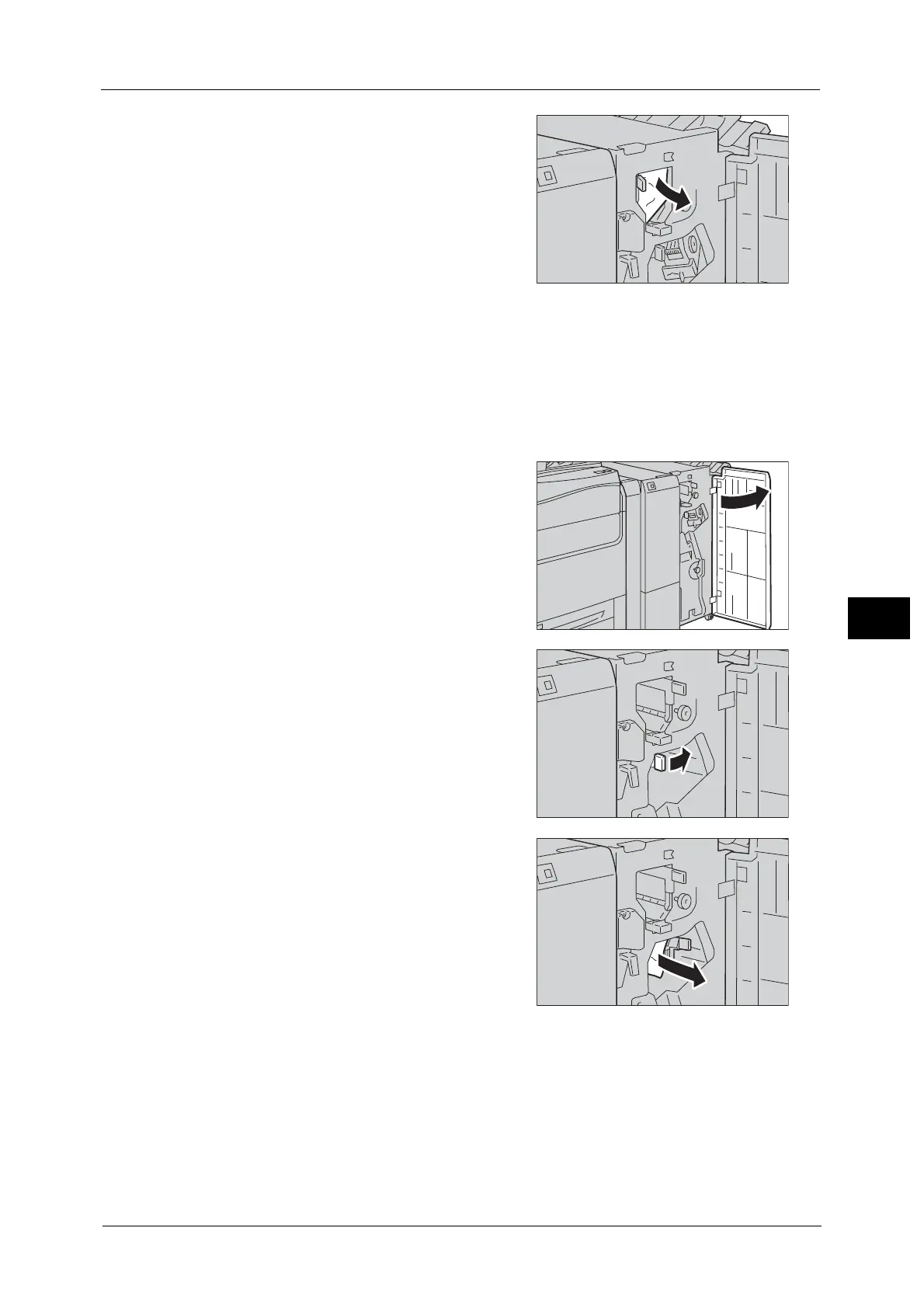 Note • If the finisher front door is not completely closed, a message will appear and the machine remains