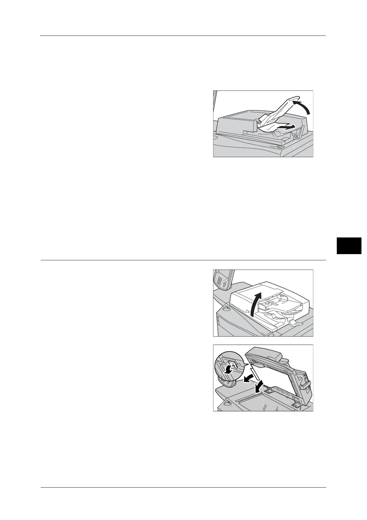 7 If the document cannot be found, lift the document feeder slowly, and remove the