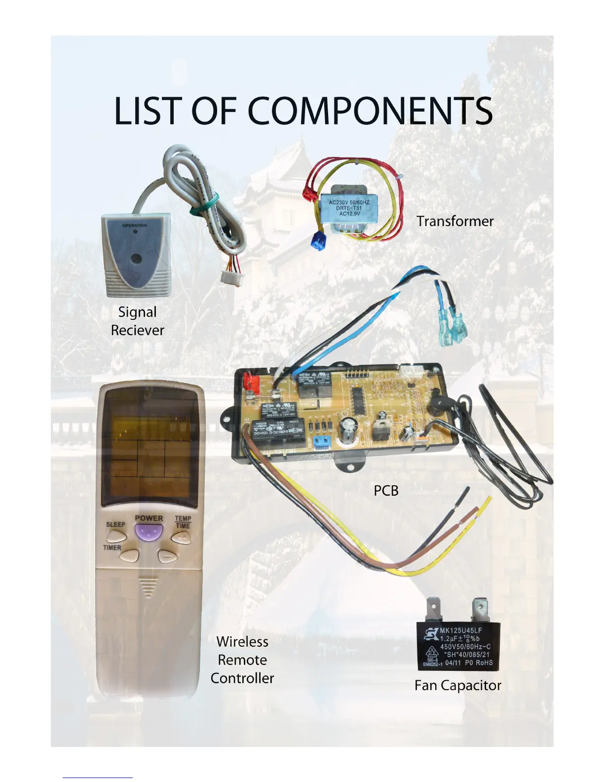 Fujiair NF166 - List of Components; Signal Receiver; Transformer; PCB (Printed Circuit Board)
