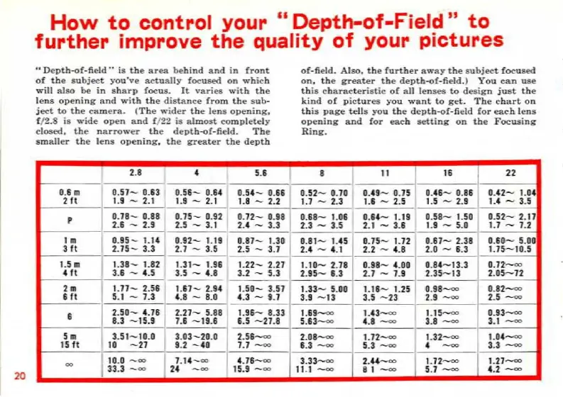 FUJICA HALF - Controlling Depth-of-Field; Understanding Depth-of-Field; Depth-of-Field Chart Usage
