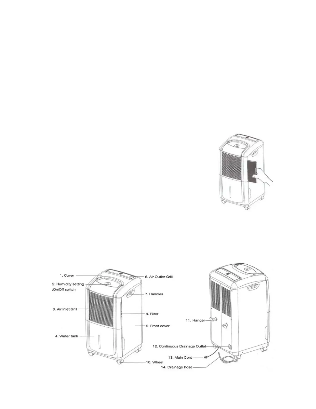 3. Indicator light for tank-full, operation, defrost and humidity.