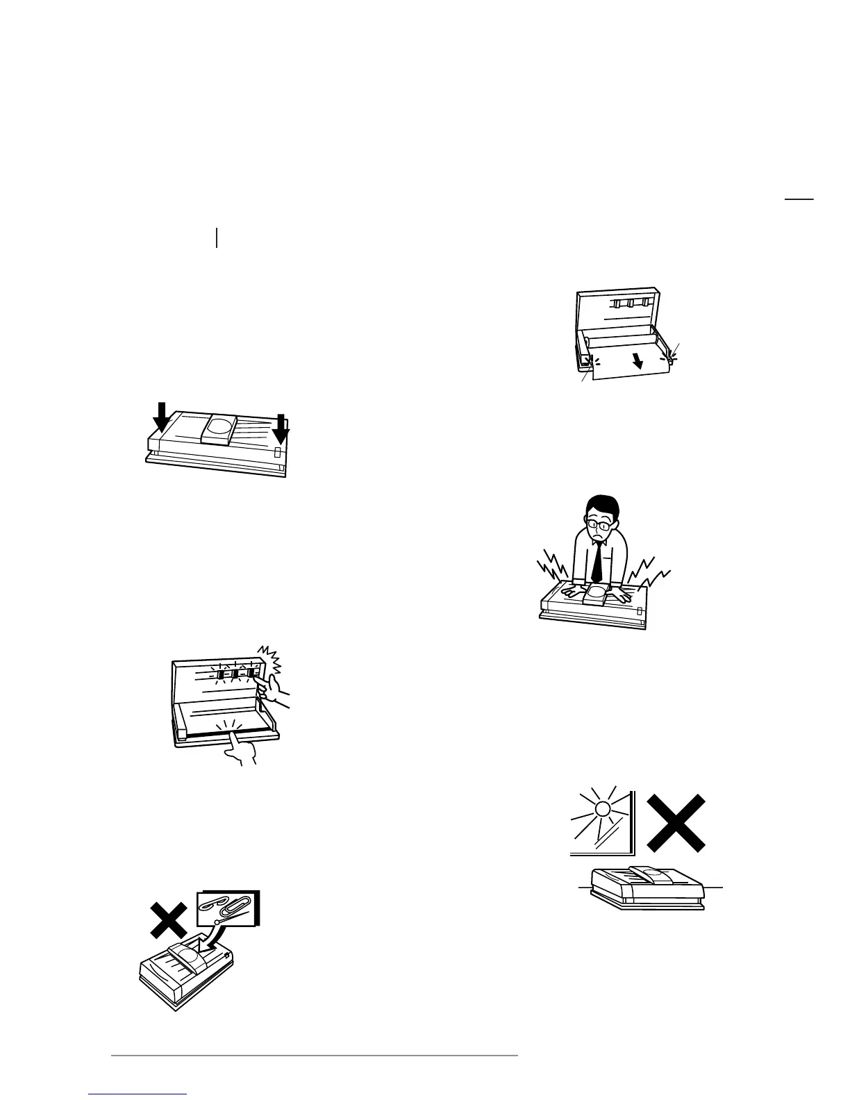 • Be careful to ensure that pins, paper clips,